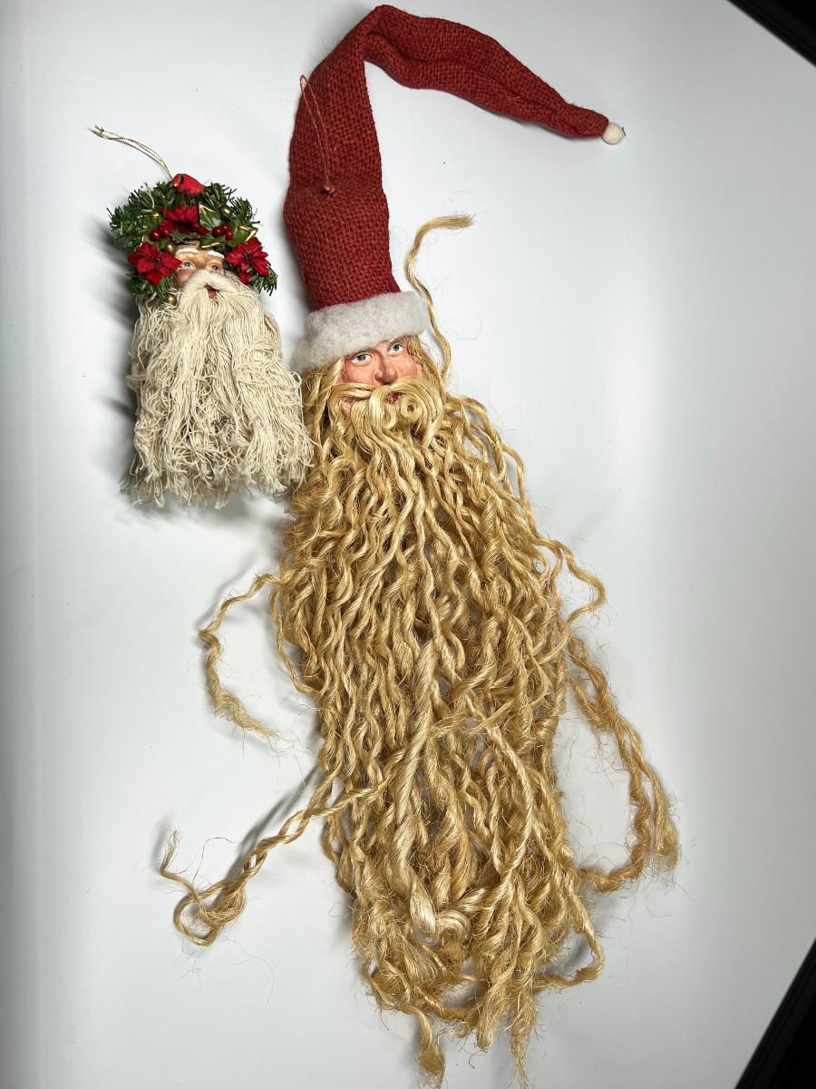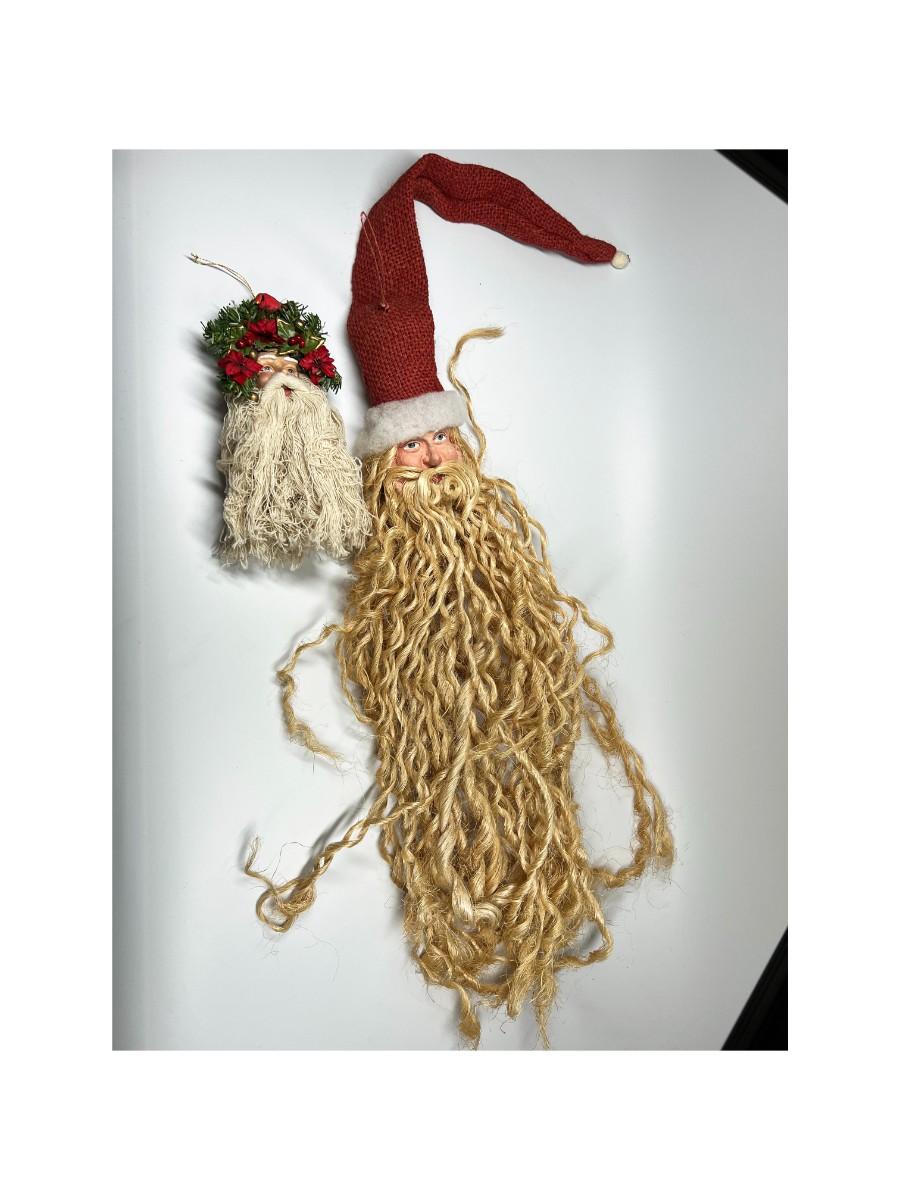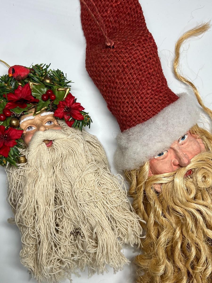 Pair of Old St. Nicholas Santa Claus Hanging Christmas Holiday Decor