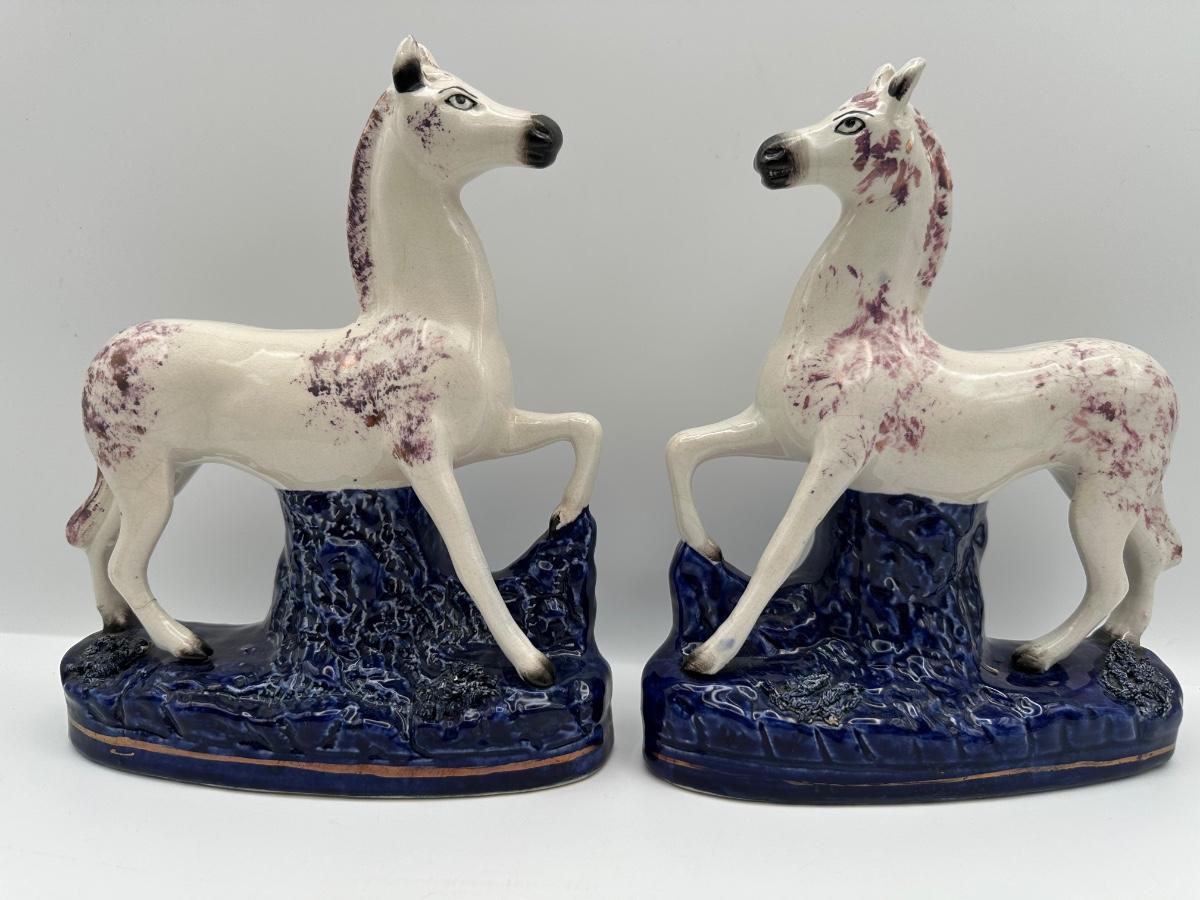 Pair of Old Staffordshire Ware Horses, England