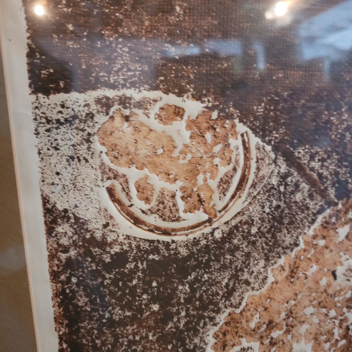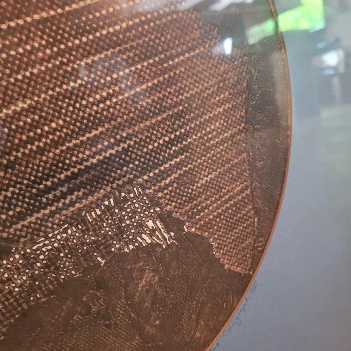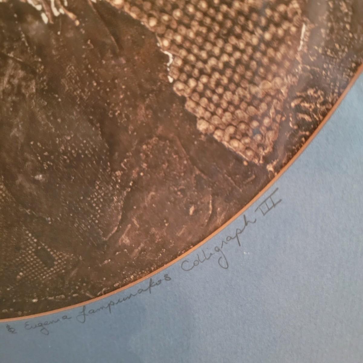 Two unique collograph prints in earth tones of deep to rusty browns with contrast of light creams. Narrow print measures approximately 17.5" x 28"H, square print 20.5" SQ. Shipping available. Shipping can be costly. We suggest contacting our preferred local shipping provider, Postage Express, with dimensions and getting an estimate before bidding: (828) 670-5501or postageexpress@yahoo.com.