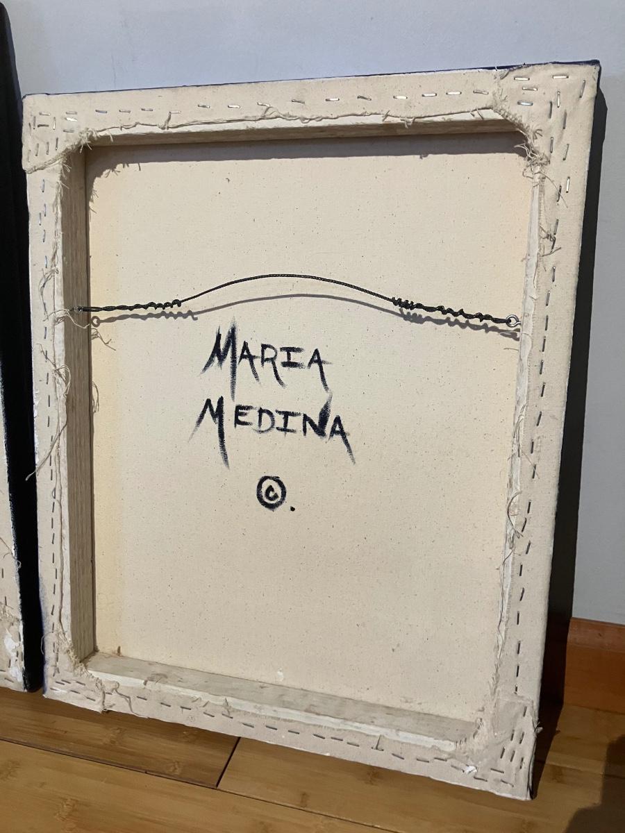 Pair of Original Signed Mixed Media Canvases by Maria Medina