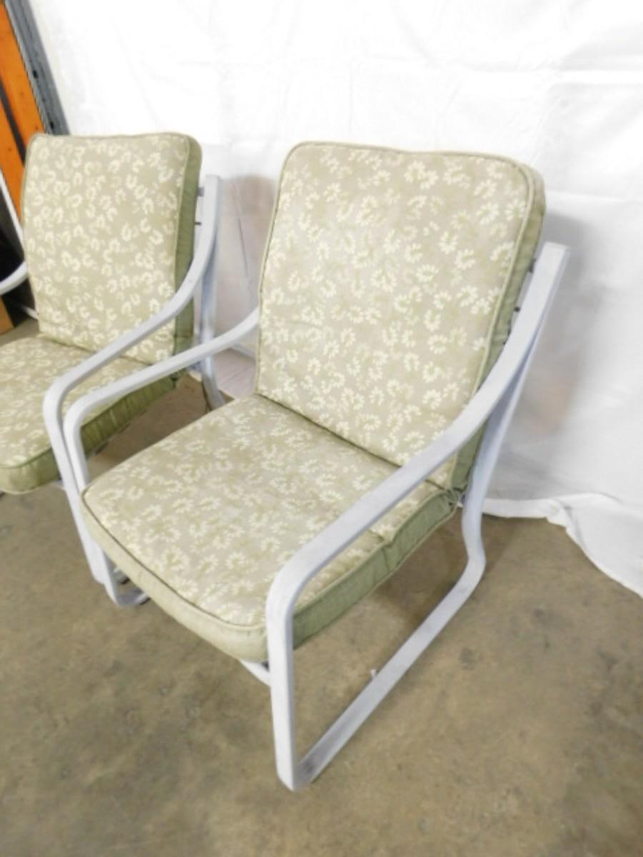 Pair of Outdoor Metal Frame and Vinyl Strap Patio Chairs with Cushions Choice B