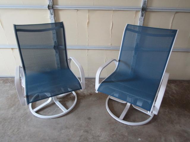 Pair of Outdoor Patio Metal Frame Mesh Fabric Swivel Chairs