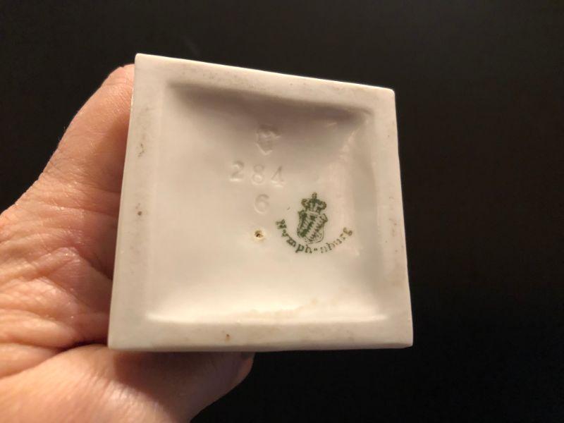 BEAUTIFUL NYMPHENBURG URNS MADE IN GERMANY POST 1945 PORCELEAN, A SHIELD CREST IS INSCRIBED IN THE BASE. THIS PAIR OF VASES ARE STAMPED AND IN EXCELLENT CONDITION, FREE OF ANY VISIBLE DAMAGE OR RESTORATIONS.  7"T X 2 1/4'W EXCELLENT CONDITION!
