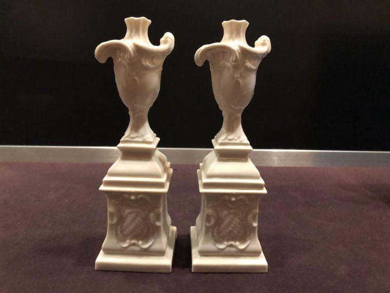 PAIR OF OUTSTANDING NYMPHENBURG PORCELEAN URN'S ON A PEDESTAL