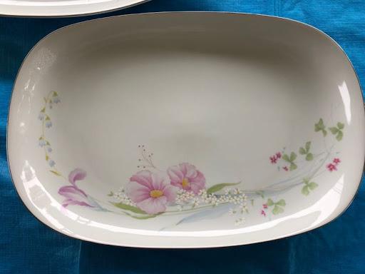 Pair of Couture Fine China Serving Platters. "Pretty Bouquet" pattern. Rounded corners rectangle.
