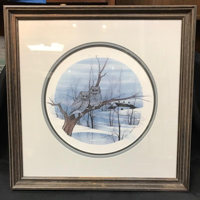 This is number 172 from a limited edition series of 1,000 prints. “Screech Owl Twins” has been long since been discontinued following its initial run in 1985. P. Buckley Moss' official gallery site appraises this work at $250 today, against an original retail price of $75.. Starting bid is only $1. Don’t miss this chance! Including the frame, peace measures 21 1/8“ x 20.5”