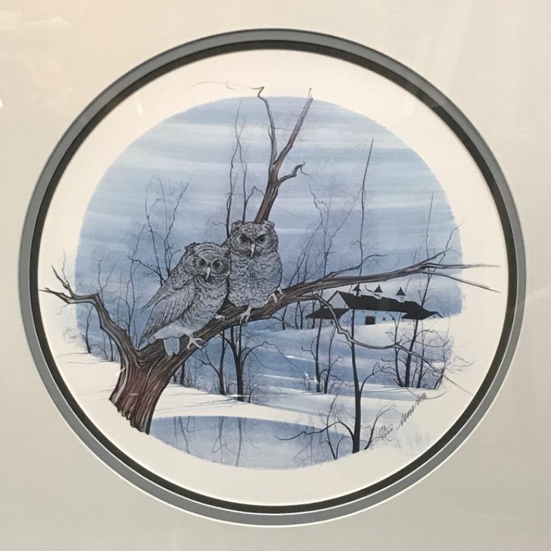 "Screech Owl Twins" by P. Buckley Moss 172/1000 LE Print