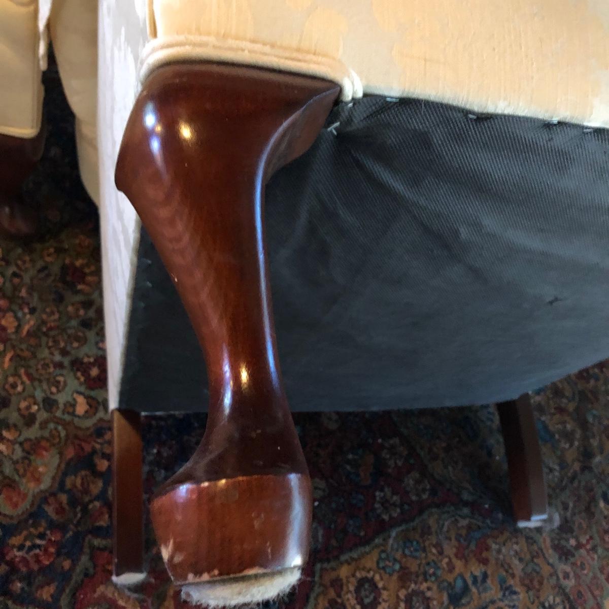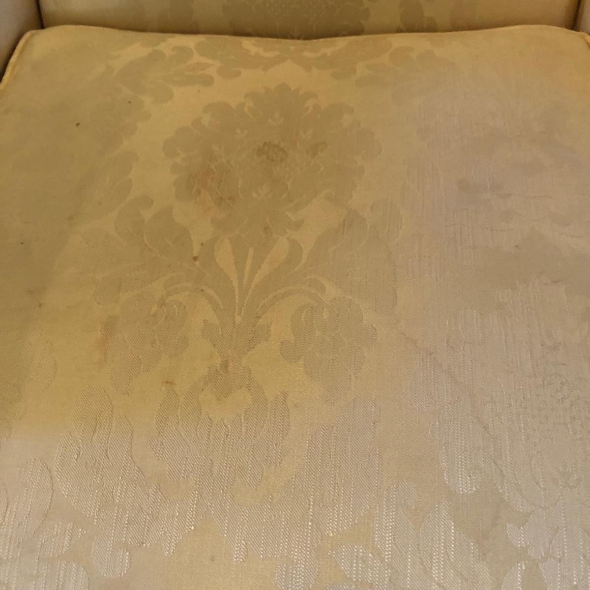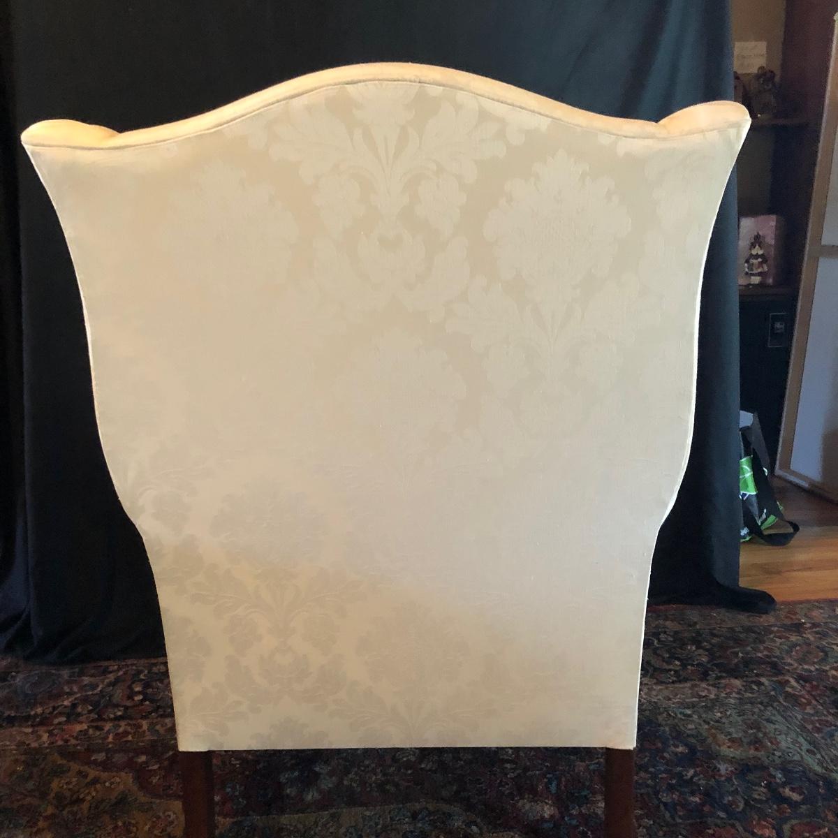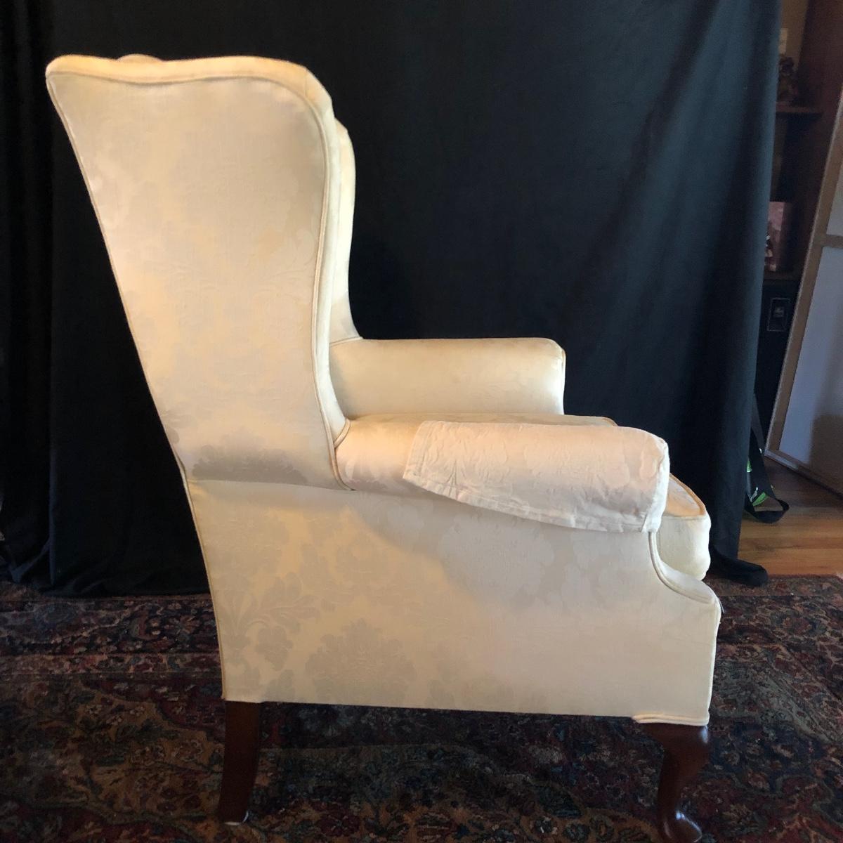 Lot includes two matching fabric padded arm chairs by Pennsylvania House. Chairs have wooden feet. Chairs have a few small stains on seat and back, see pictures. Chairs measure 32” x 35” x 41” with a 20” seat height.