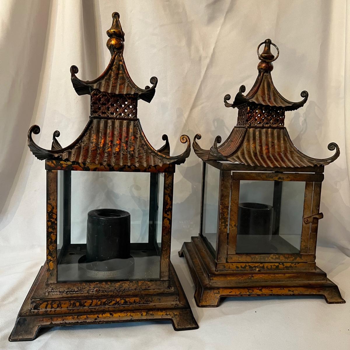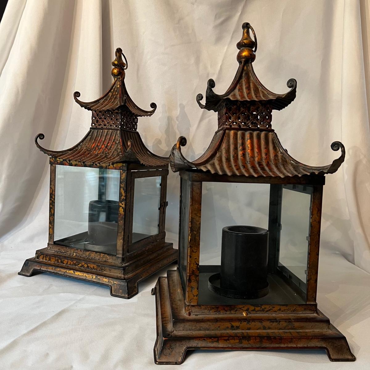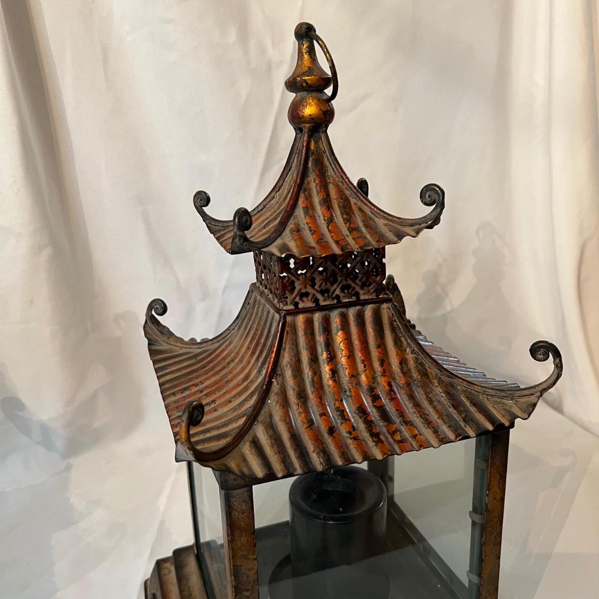 Pair of Pagoda Style Copper Lanterns (FR-RG)