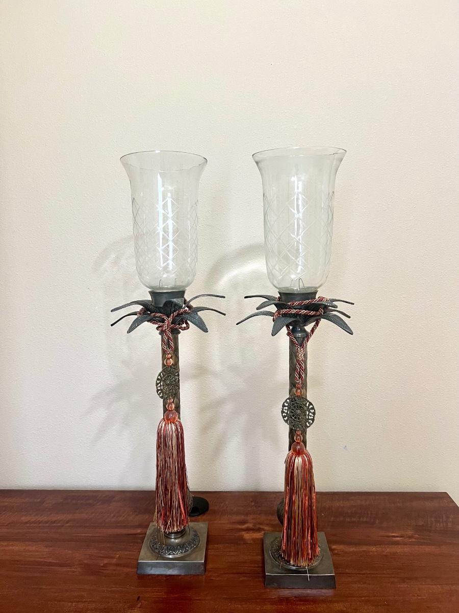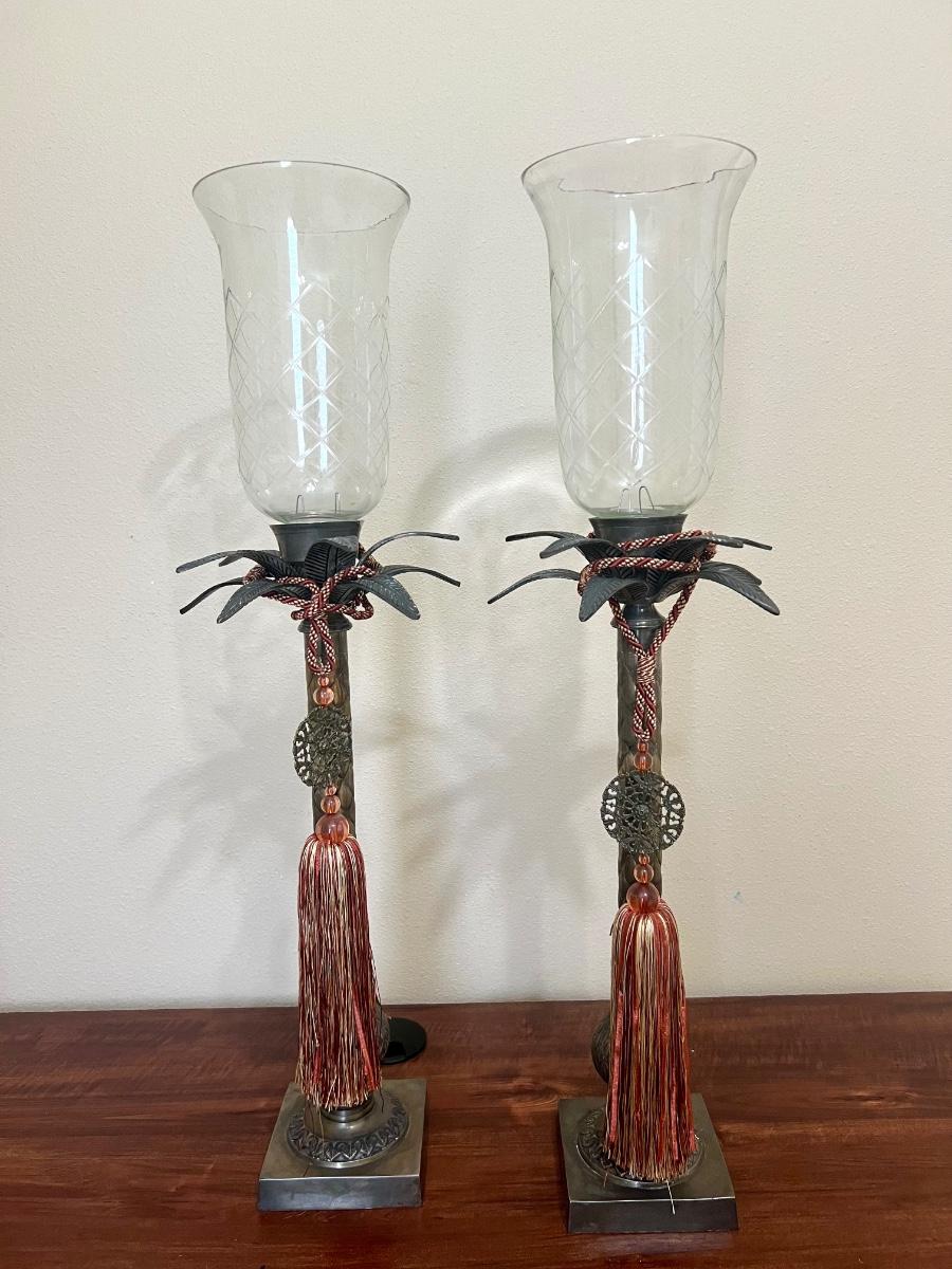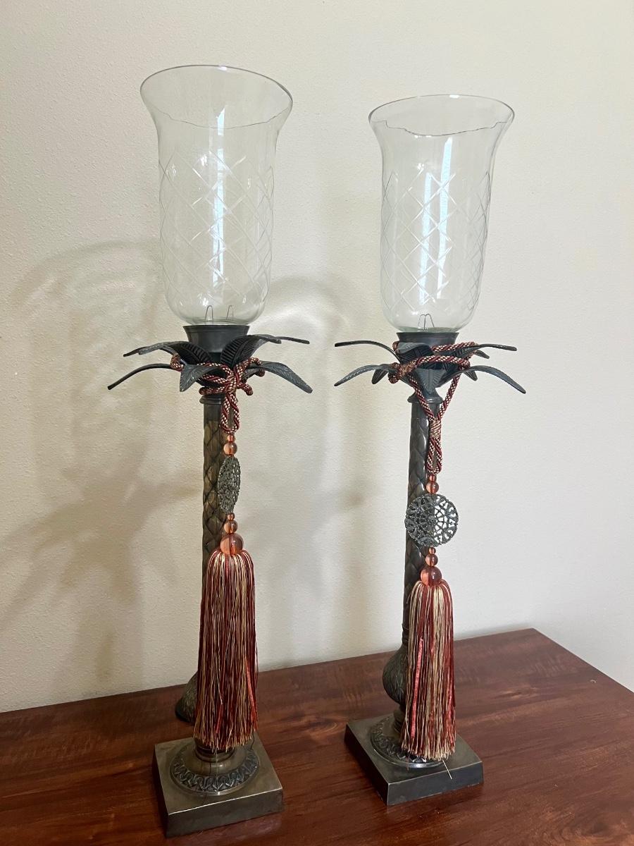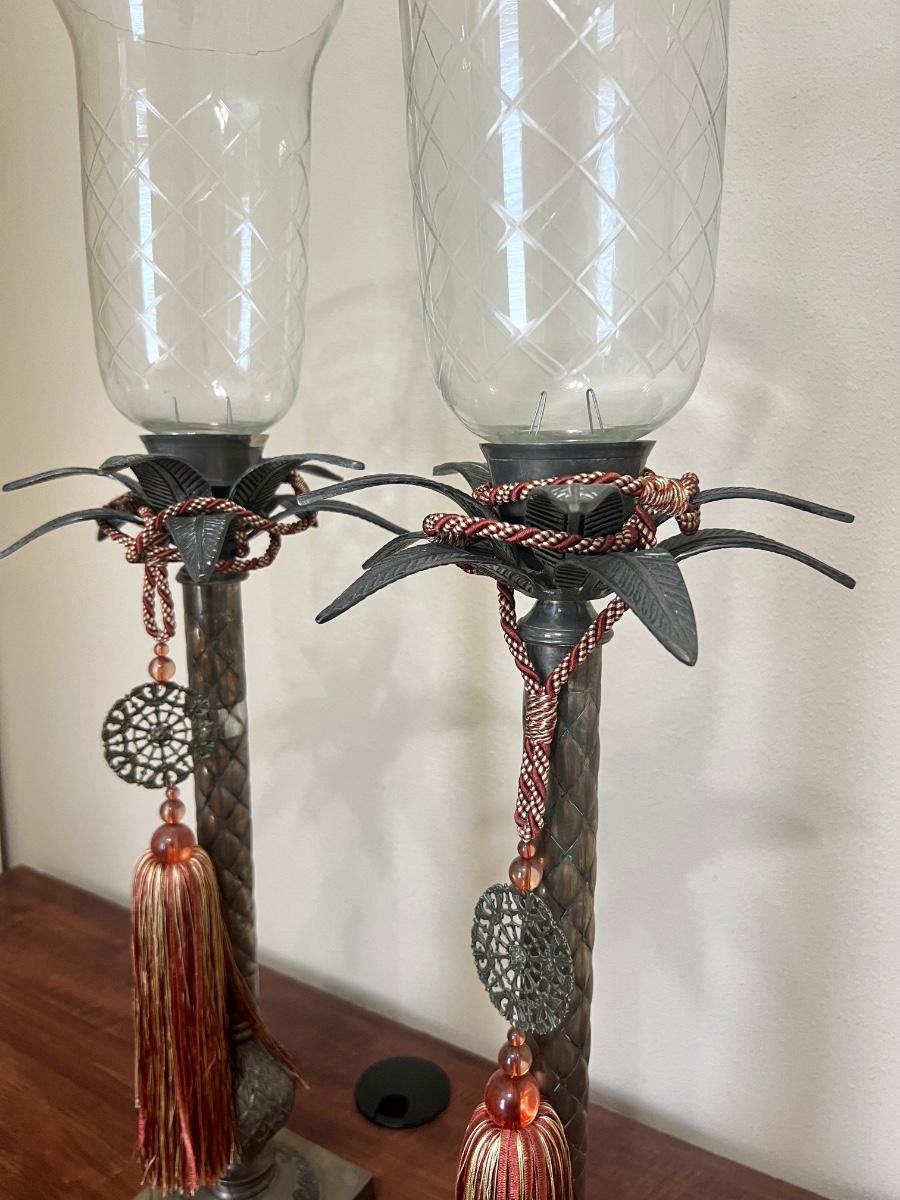 Made In India, large pair of palm candle holders. These are heavy. Measure 29 inches tall.