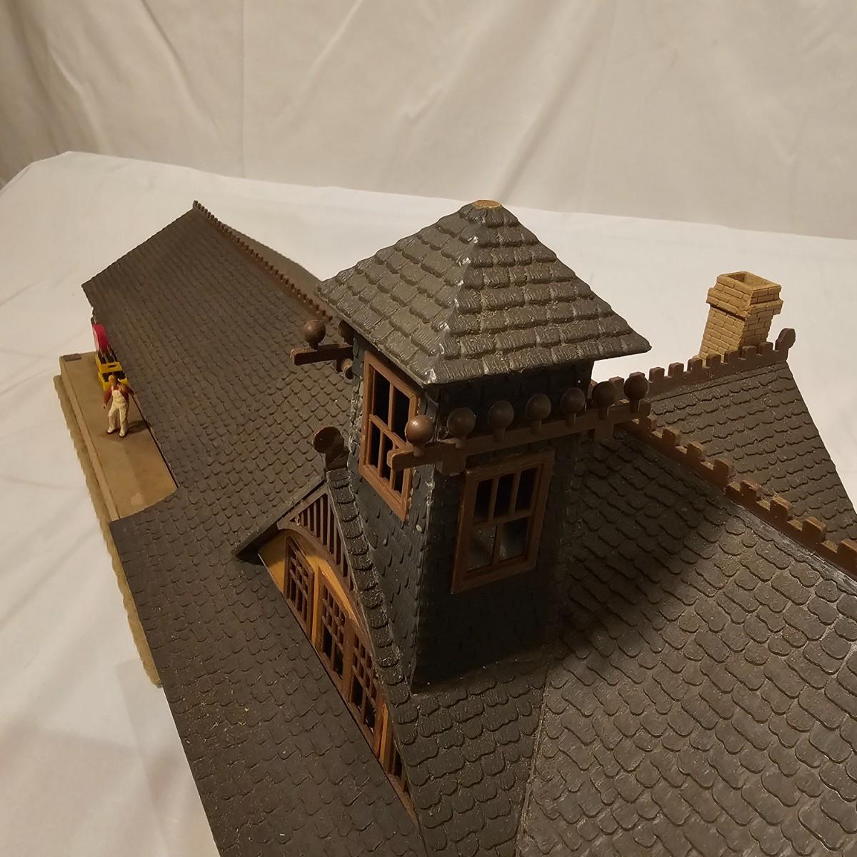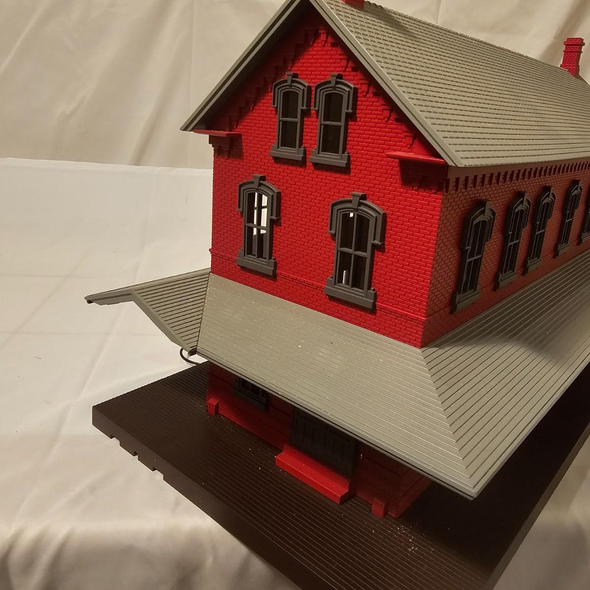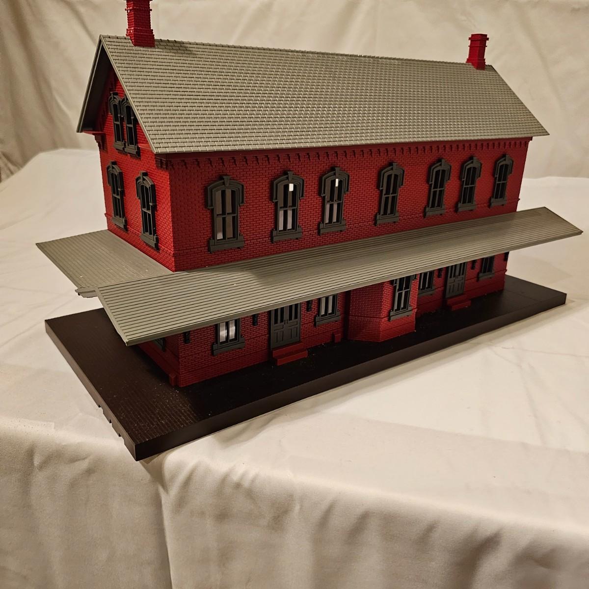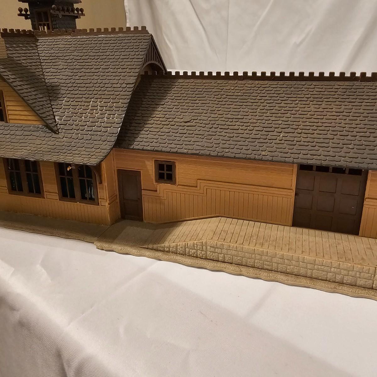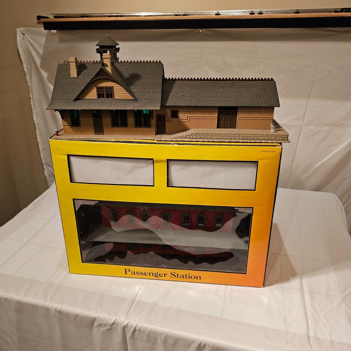 Two different pre-made passenger stations for your O scale layout. Tan and brown item has station on one end and a freight house attached to the other. Many outside details and figures. 22.5" x 9" x 9"H. Red brick station has windows all around, is two story and measures 18.5" x 8.5" x 10.5"H. Made by MTH/ Rail King, with box. See photos for details. Please note that any price tag seen on an item was not put there by Sterling Transitions and does not reflect the current value of the item.