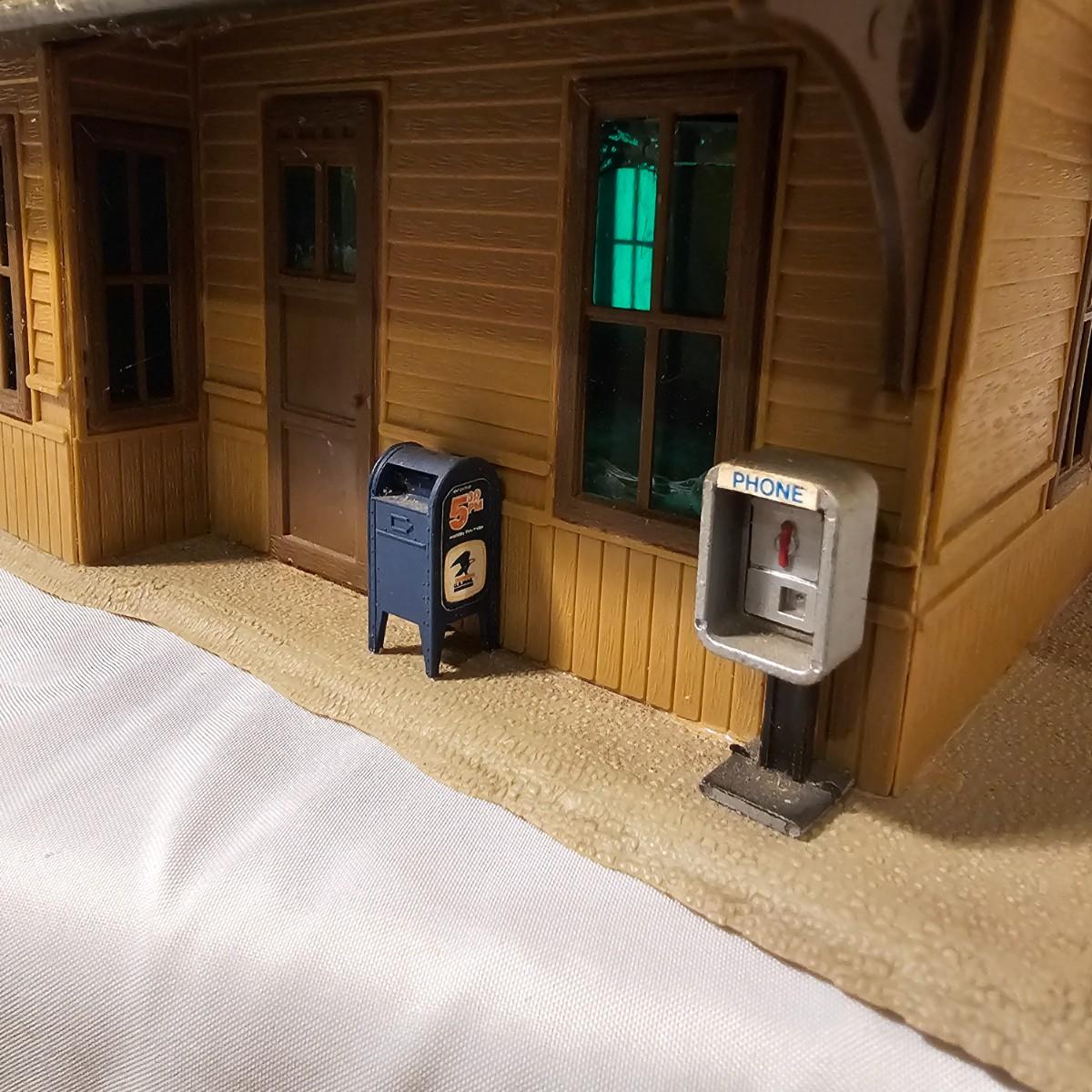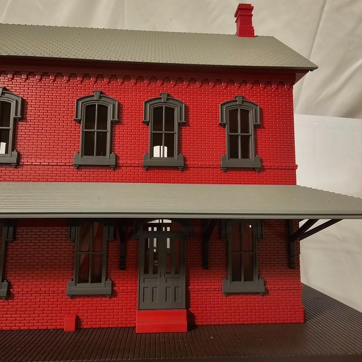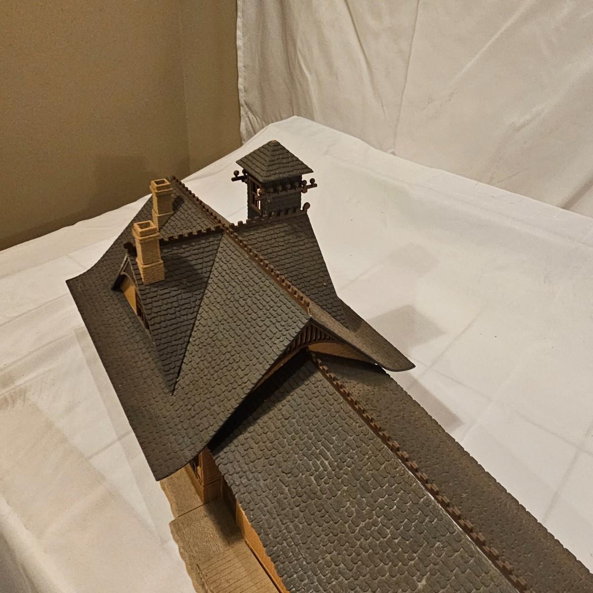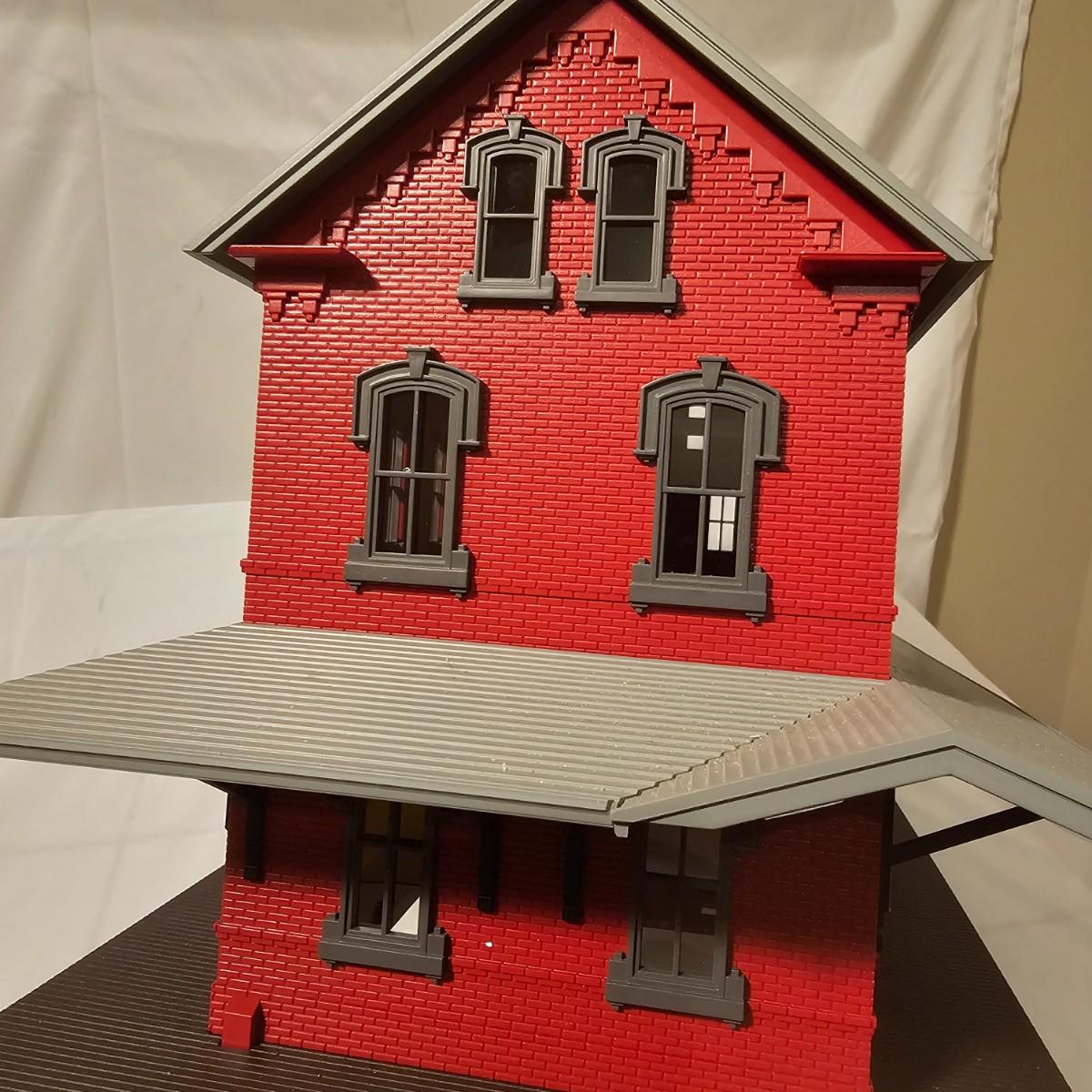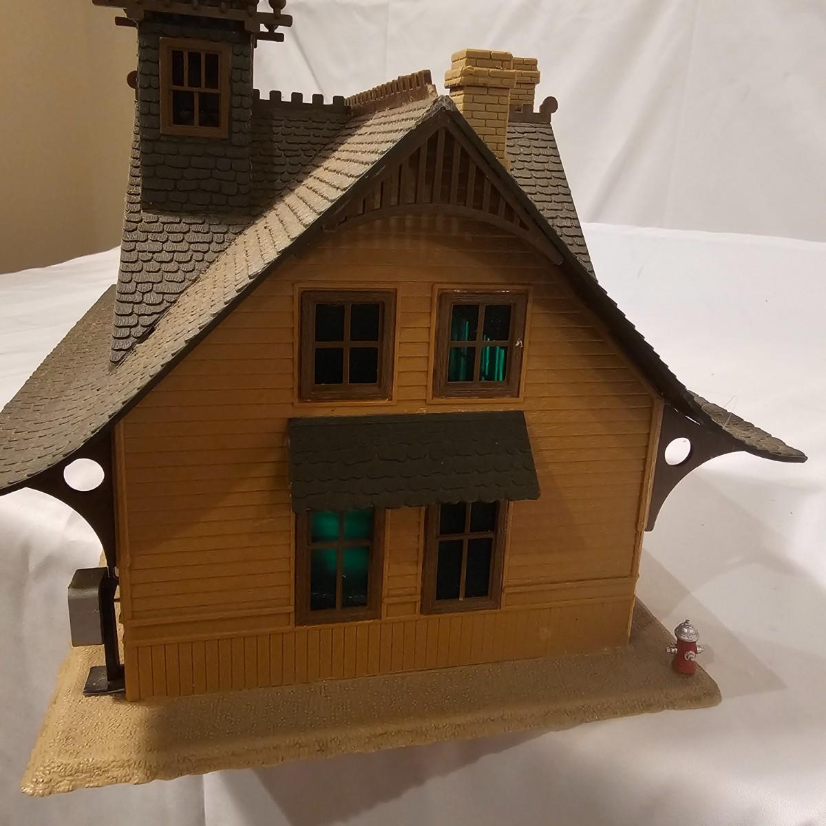 Two different pre-made passenger stations for your O scale layout. Tan and brown item has station on one end and a freight house attached to the other. Many outside details and figures. 22.5" x 9" x 9"H. Red brick station has windows all around, is two story and measures 18.5" x 8.5" x 10.5"H. Made by MTH/ Rail King, with box. See photos for details. Please note that any price tag seen on an item was not put there by Sterling Transitions and does not reflect the current value of the item.