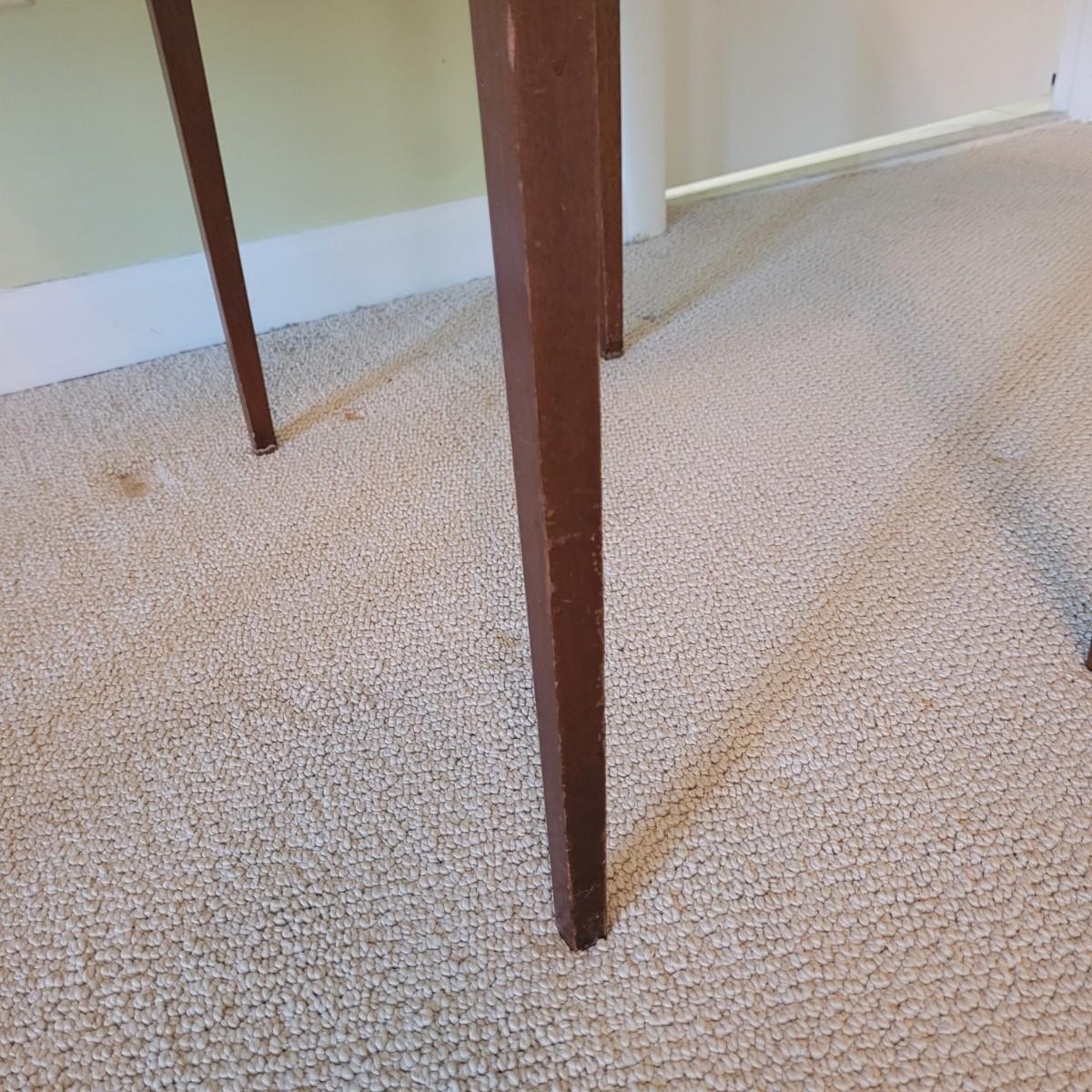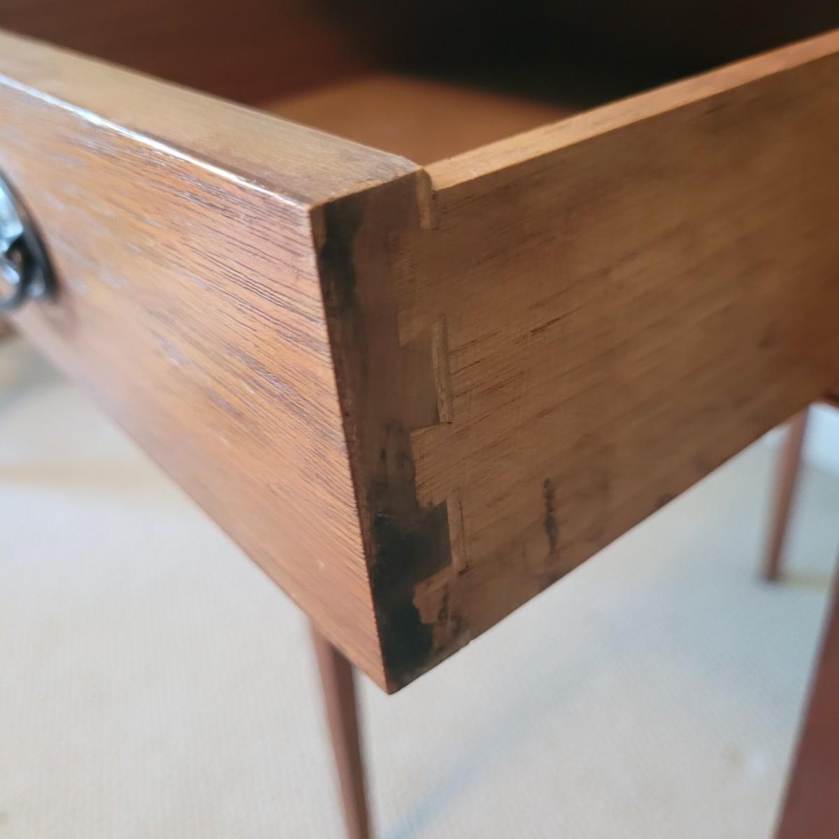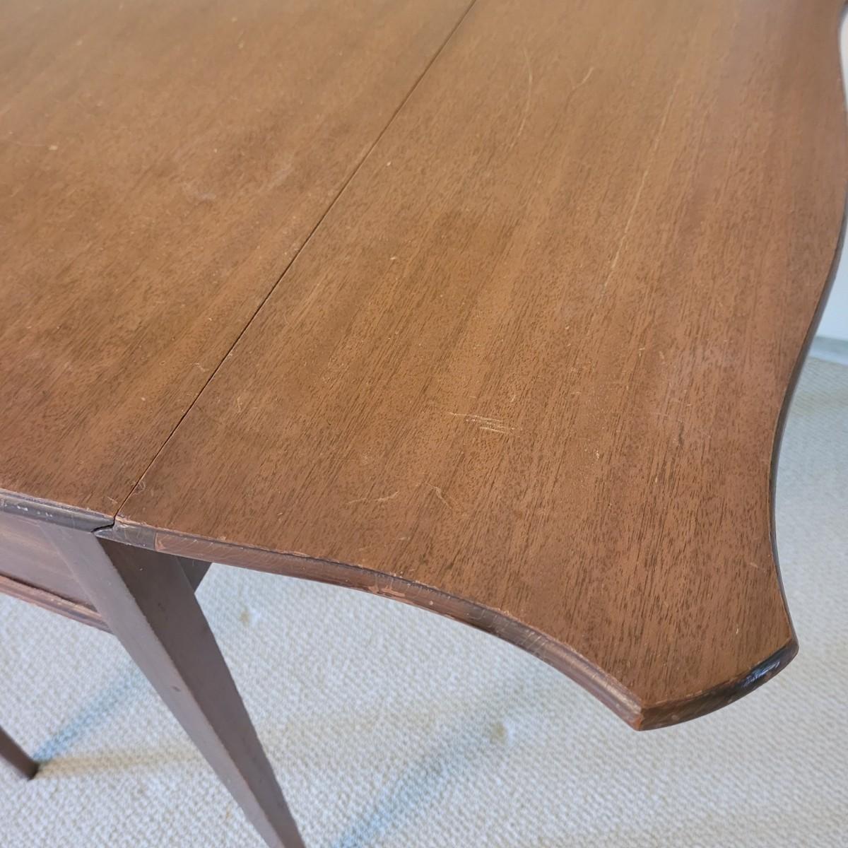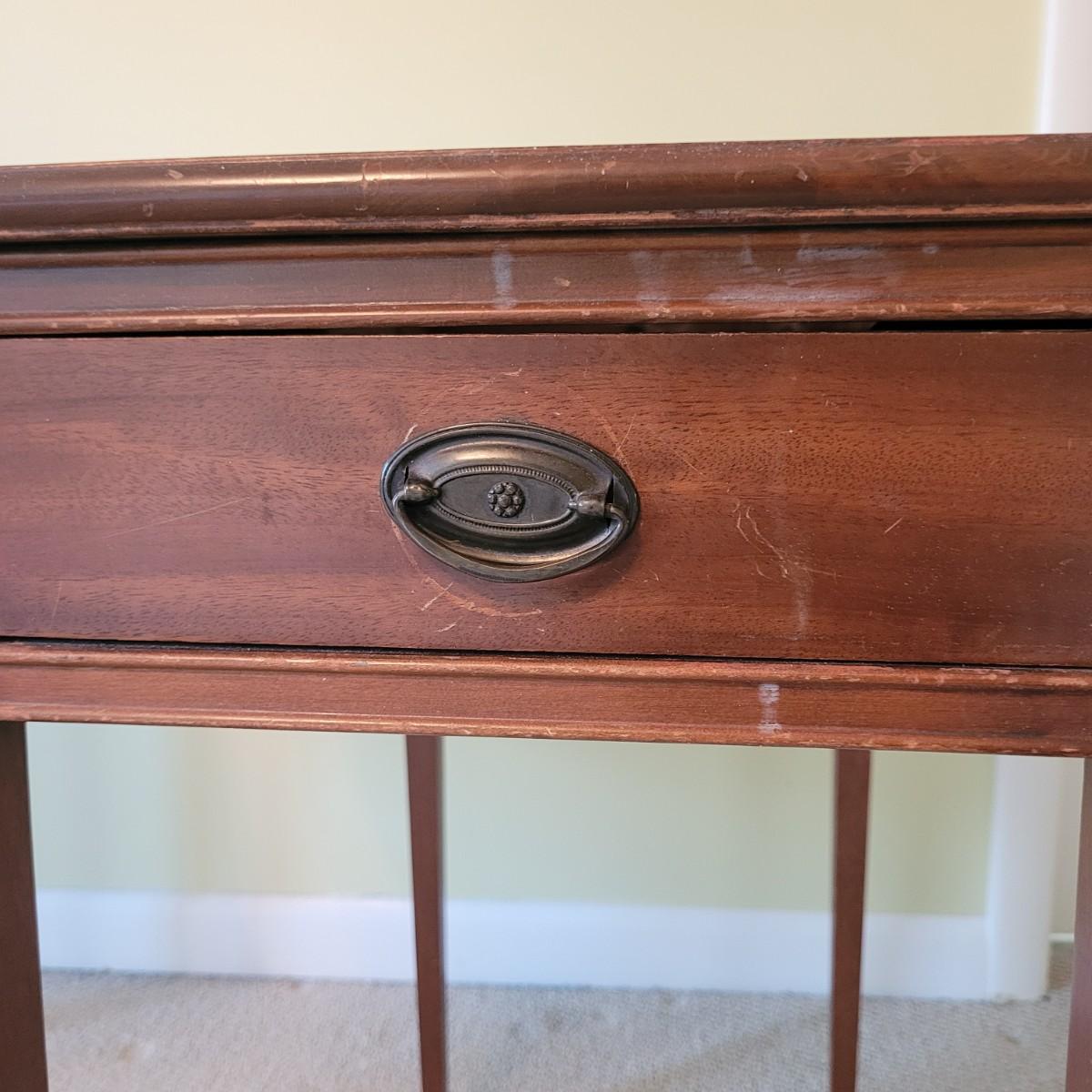 This pair of Pembroke style drop leaf side tables has dovetail joints and easy slide levers for the leaves. Some scuffs and water marks throughout (see photos). Measure approximately 15.5" x 22" x 27"H, open leaves 31.5"W. Local pickup only.