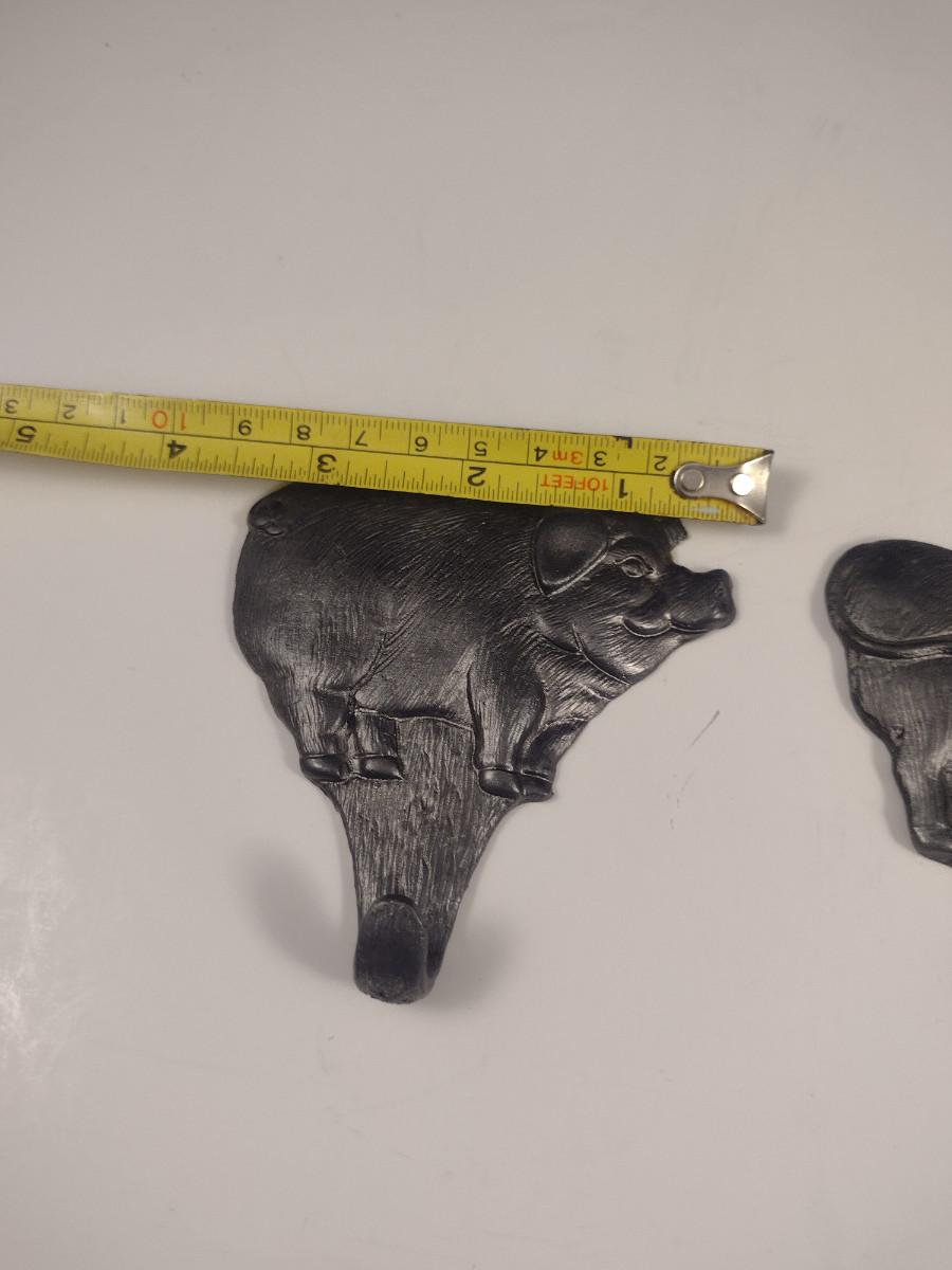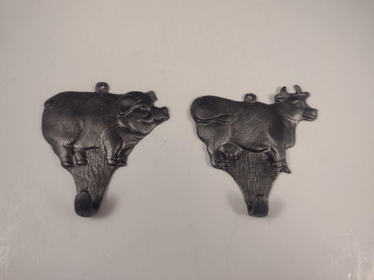 Pair of Pewter Wall Hooks- Pig and Cow.