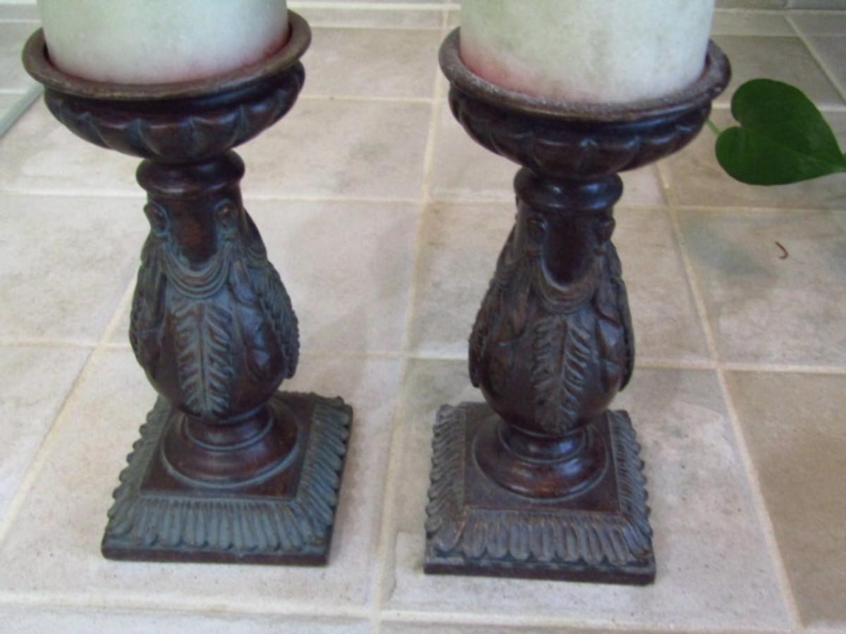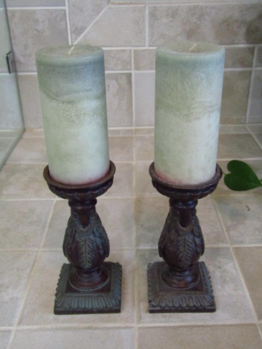 Pair of PIllar Candle Holders with Candles- Round Top (MBR). Candles are from Pier 1.