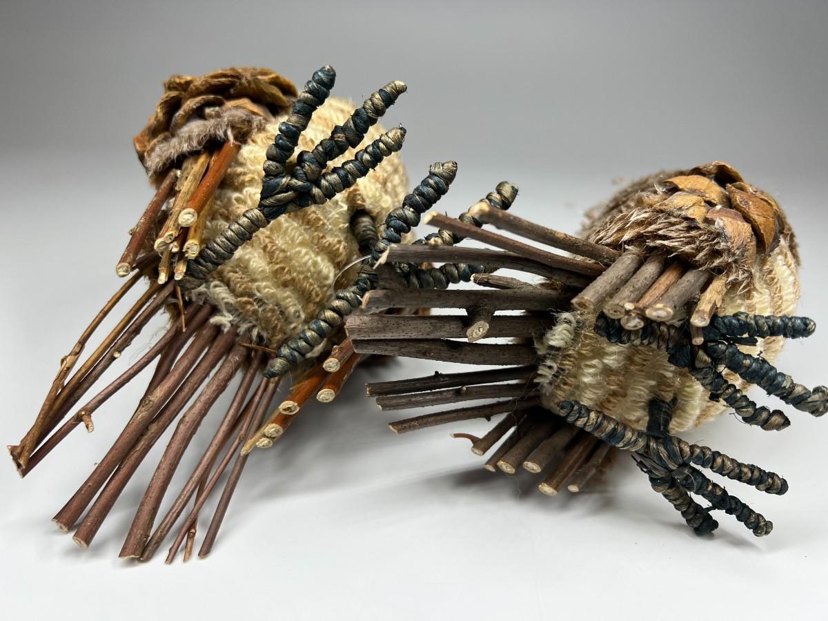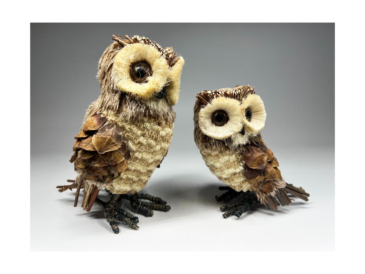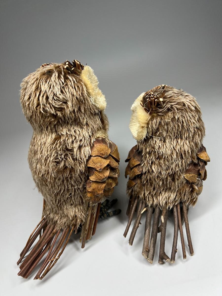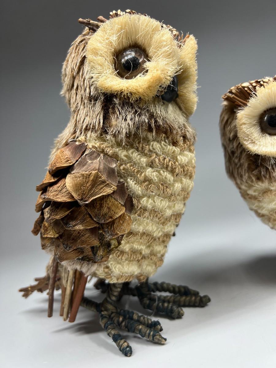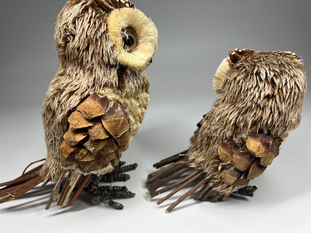 Pair of Pine Cone Branches Twig Owl Rustic Decor Figurines
