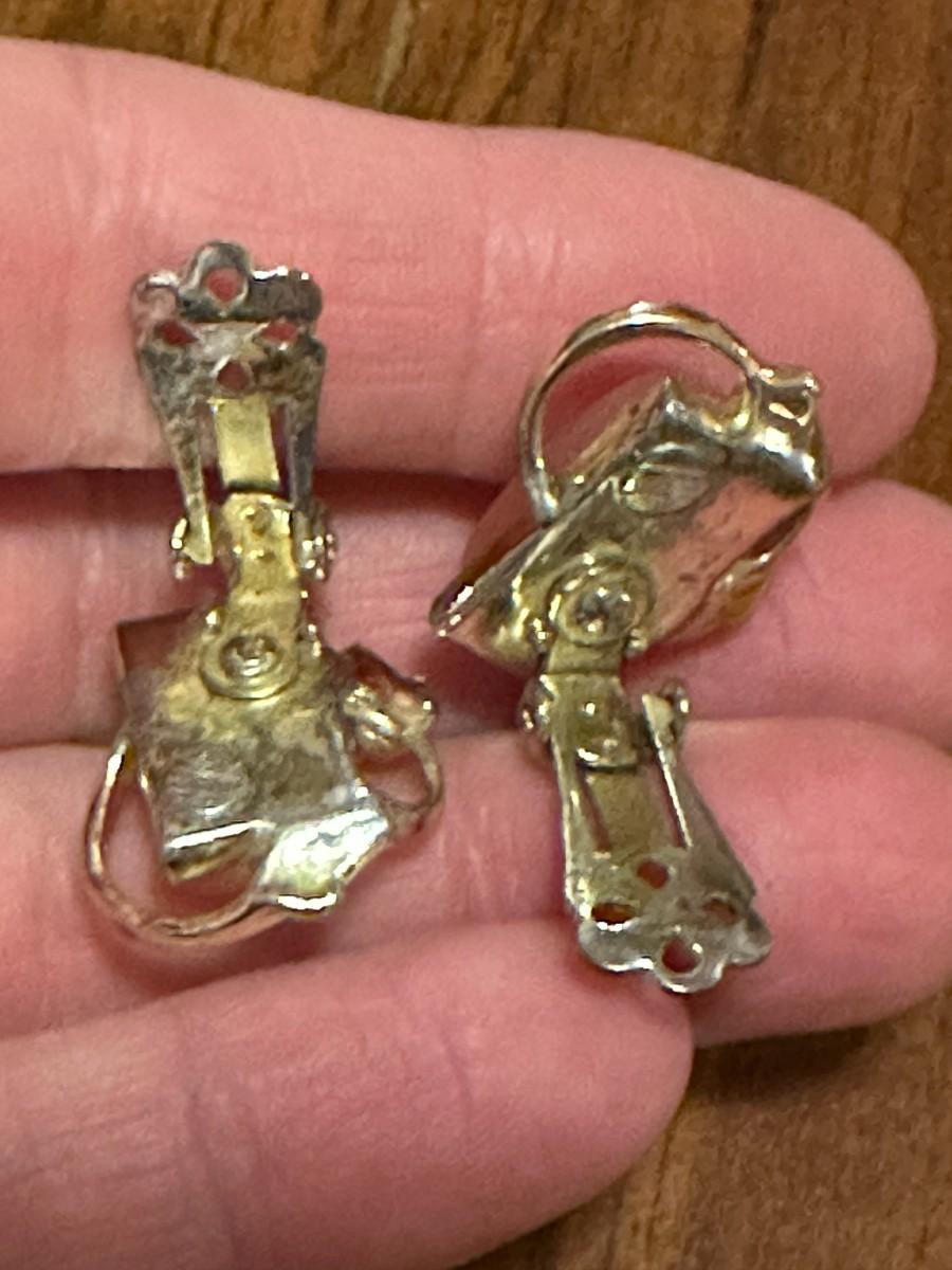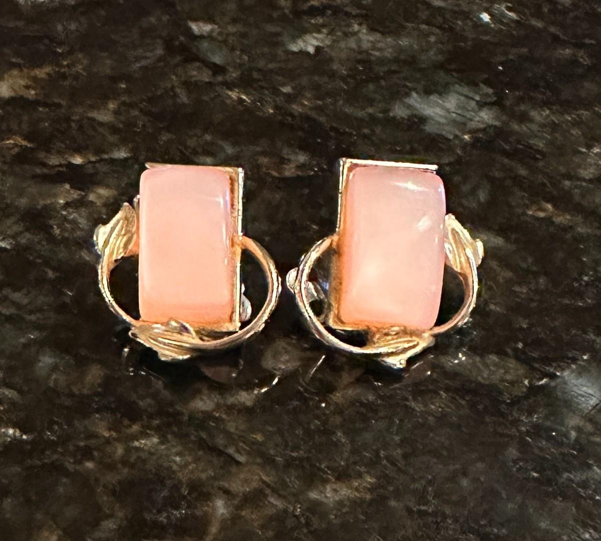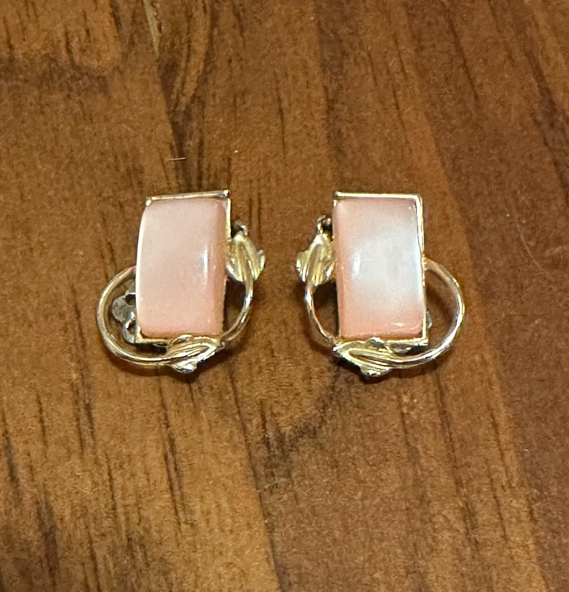 Pair of Pink (Signed) Coro Brand Vintage Clip-On Earrings with silver-toned metal