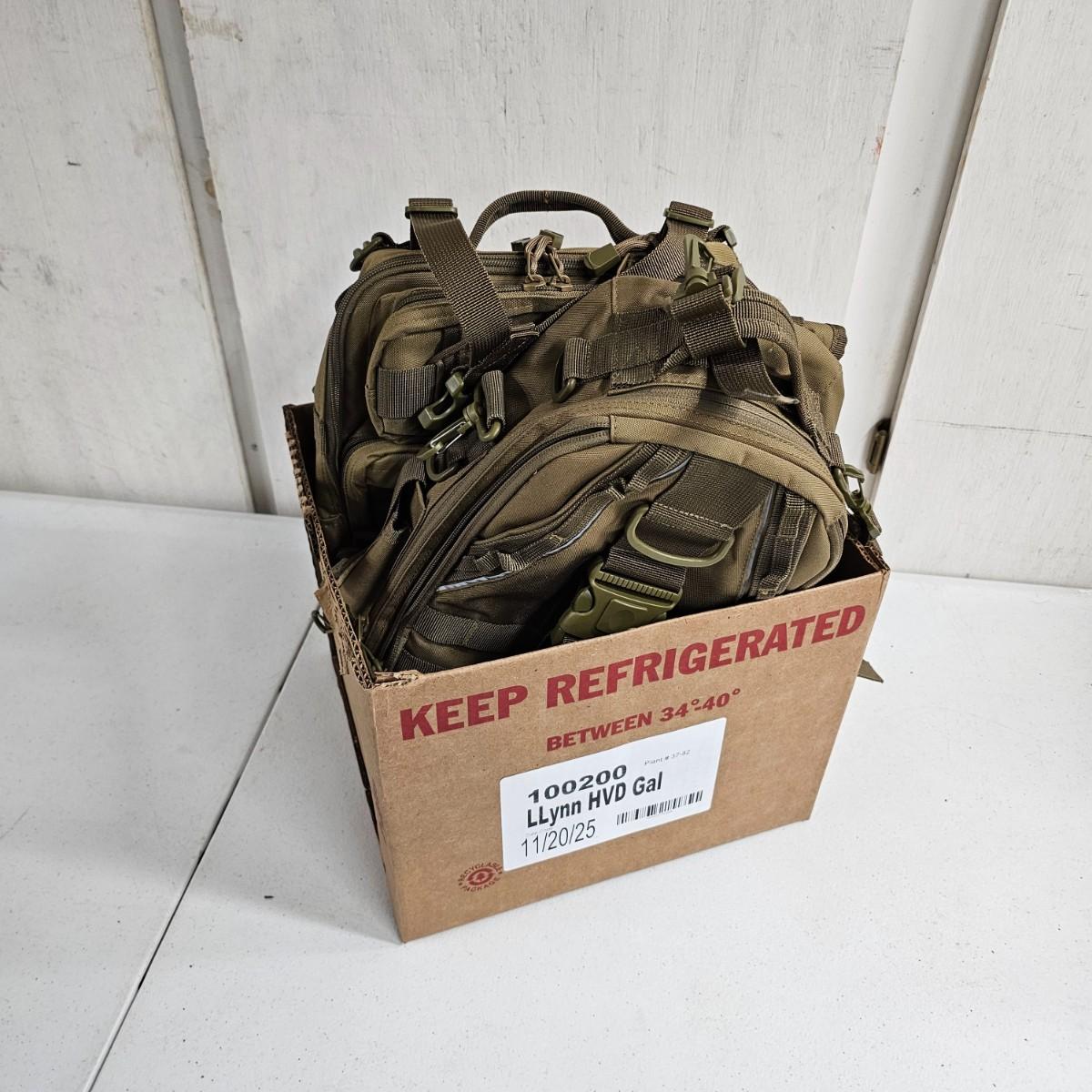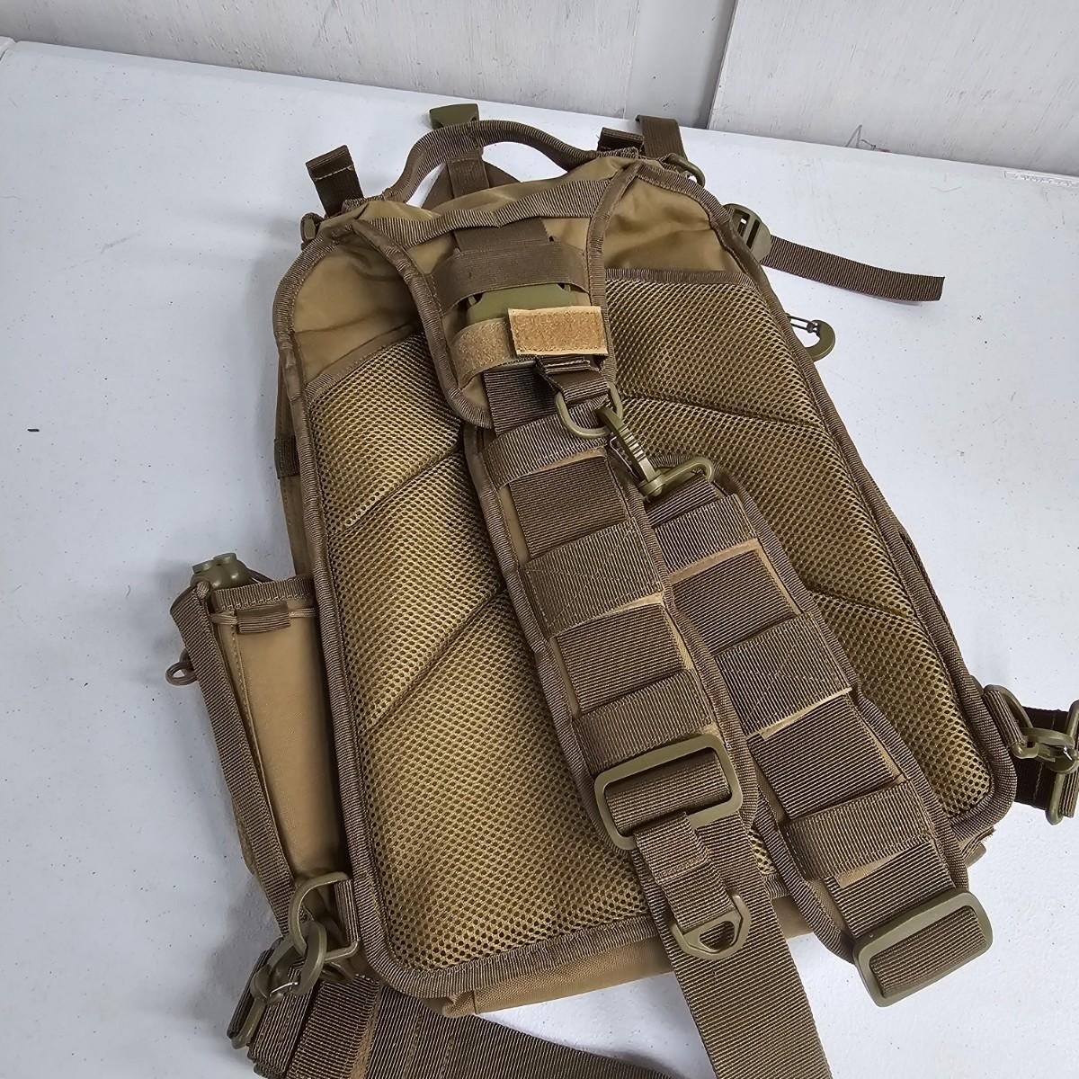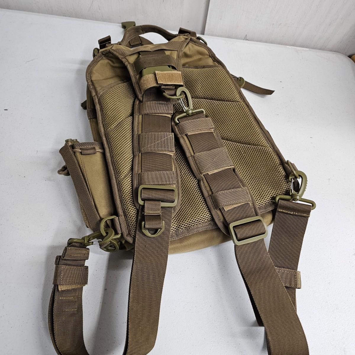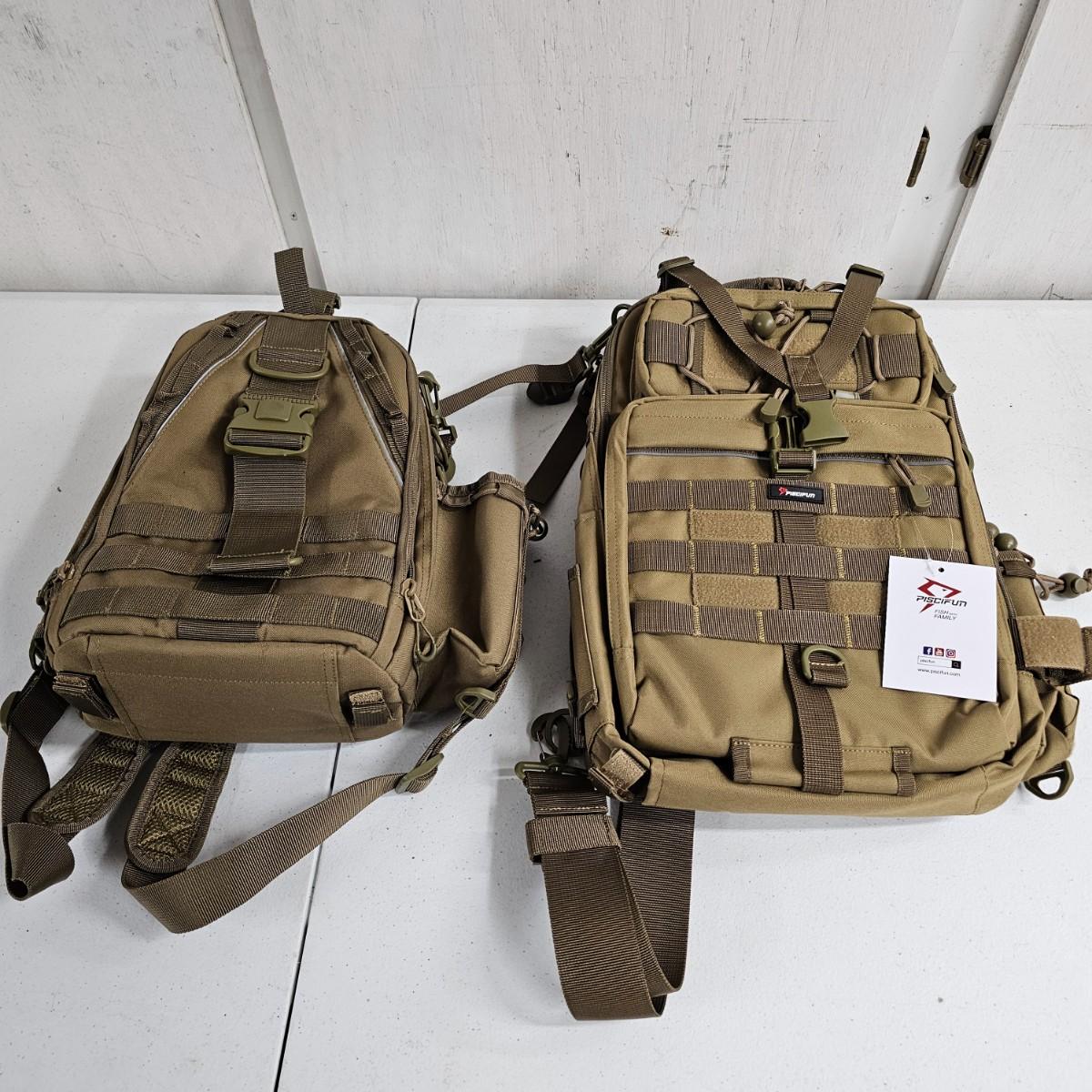 Two practically new backpack style bags by Piscifun. All khaki in color with reflective strips for night time visibility. Lots of pockets, pouches, straps for ease of transport. Carry handles on top, easy pull grips for all pouches. Large bag measures 15" x 8" x 20" H, smaller bag is 12" x 6" x 17"H. See photos for details. Shipping available.