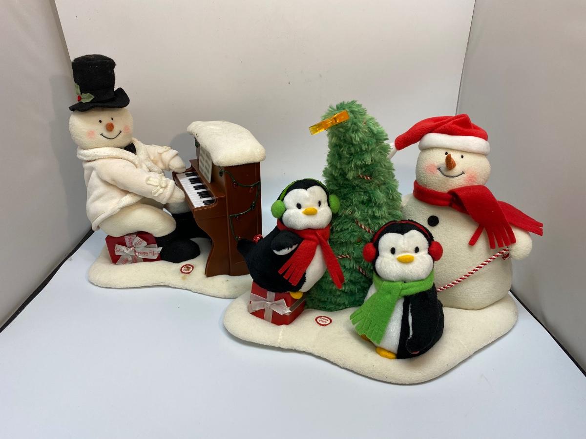 Pair of Plush Animatronic Battery Op Snowmen Christmas Holiday Musical Displays