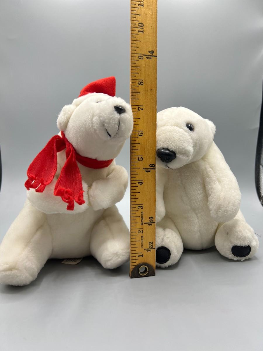 Pair of vintage polar bear stuffed animal plushes. Good condition. May be dusty from age, display, and storage.
