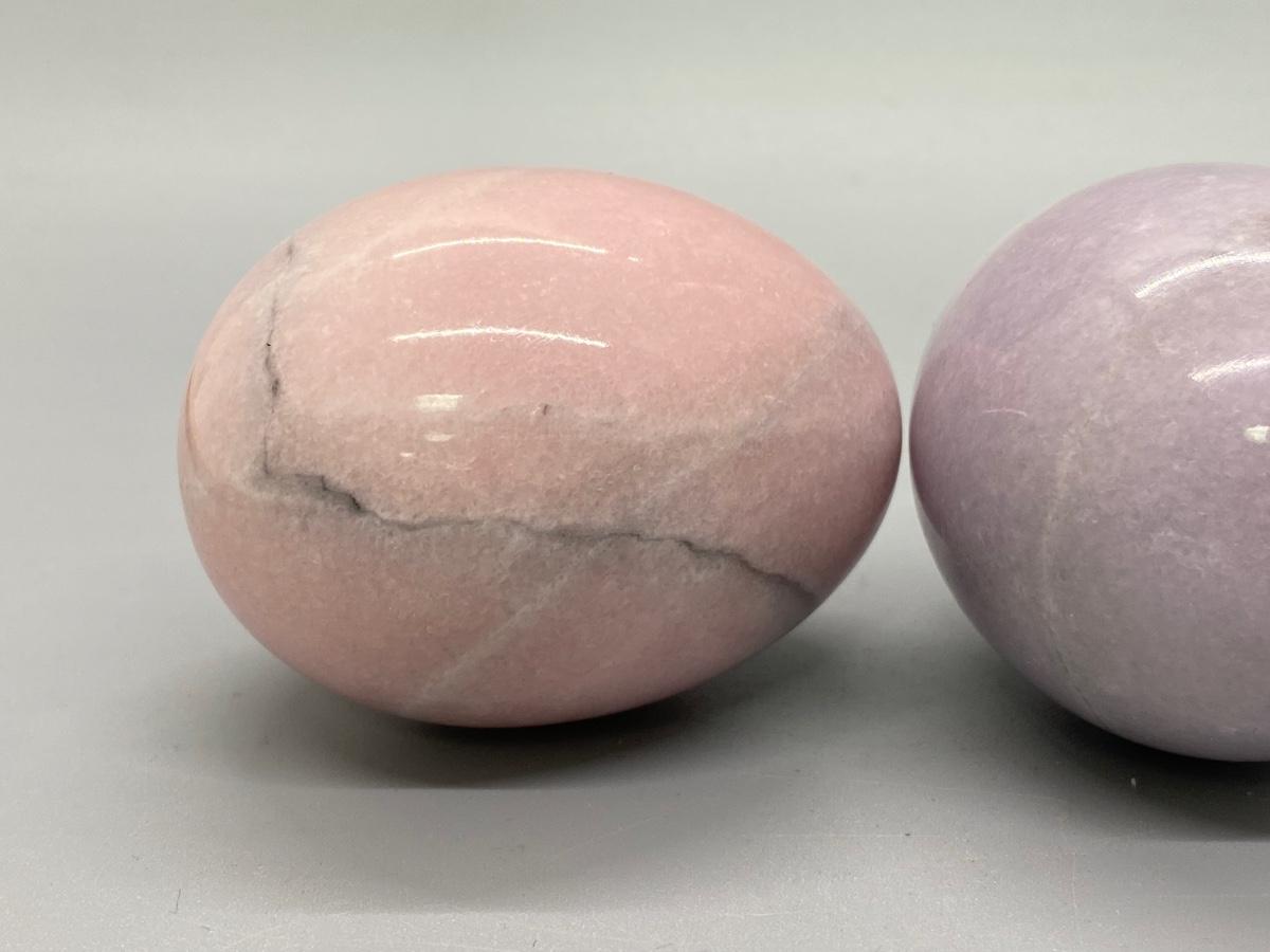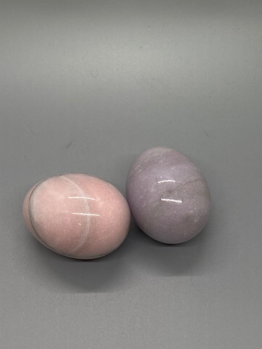 Pair of Polished Stone Pink & Purple Quartz Easter Eggs