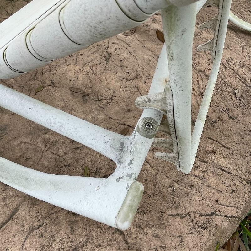 White painted metal.