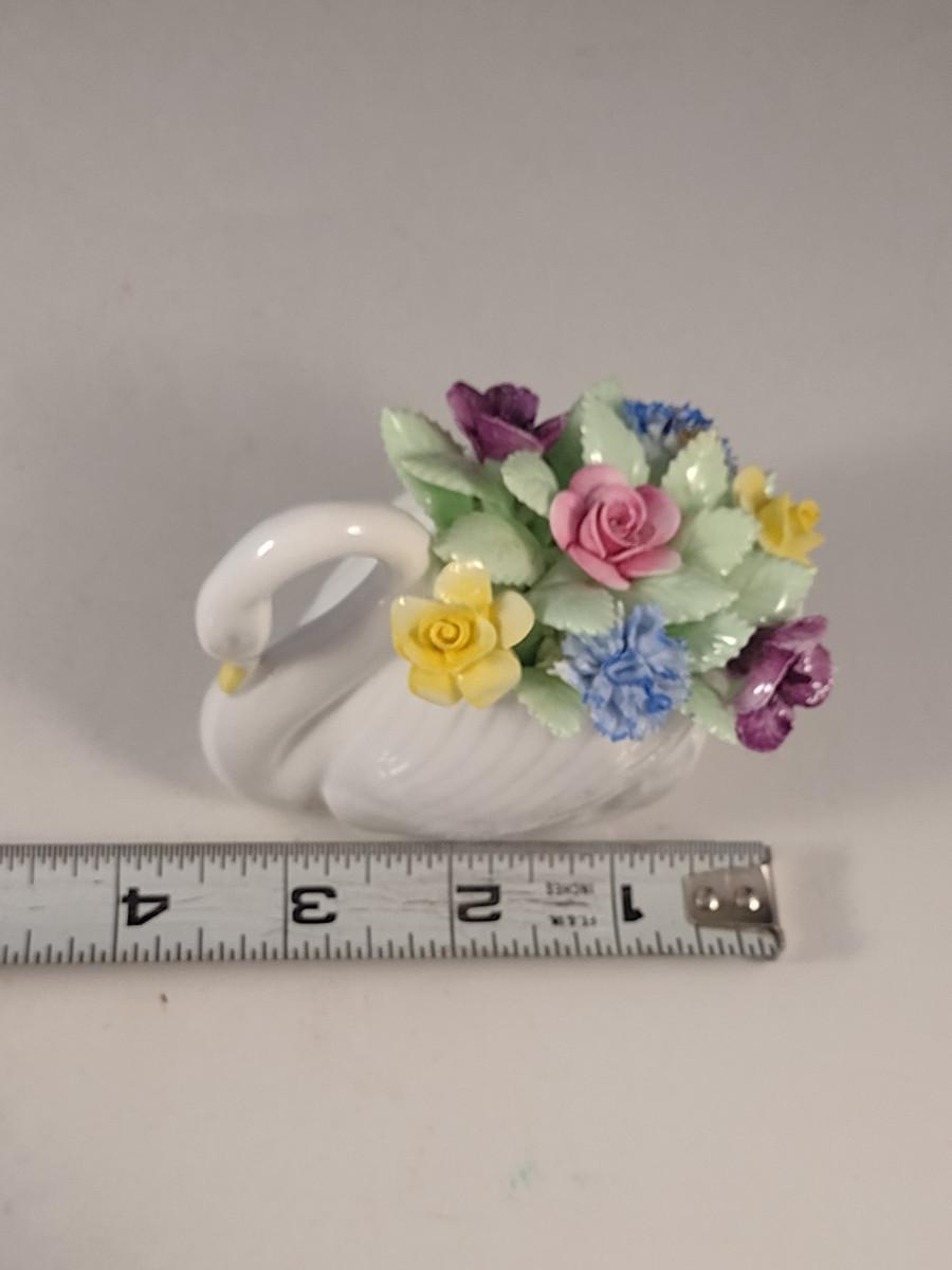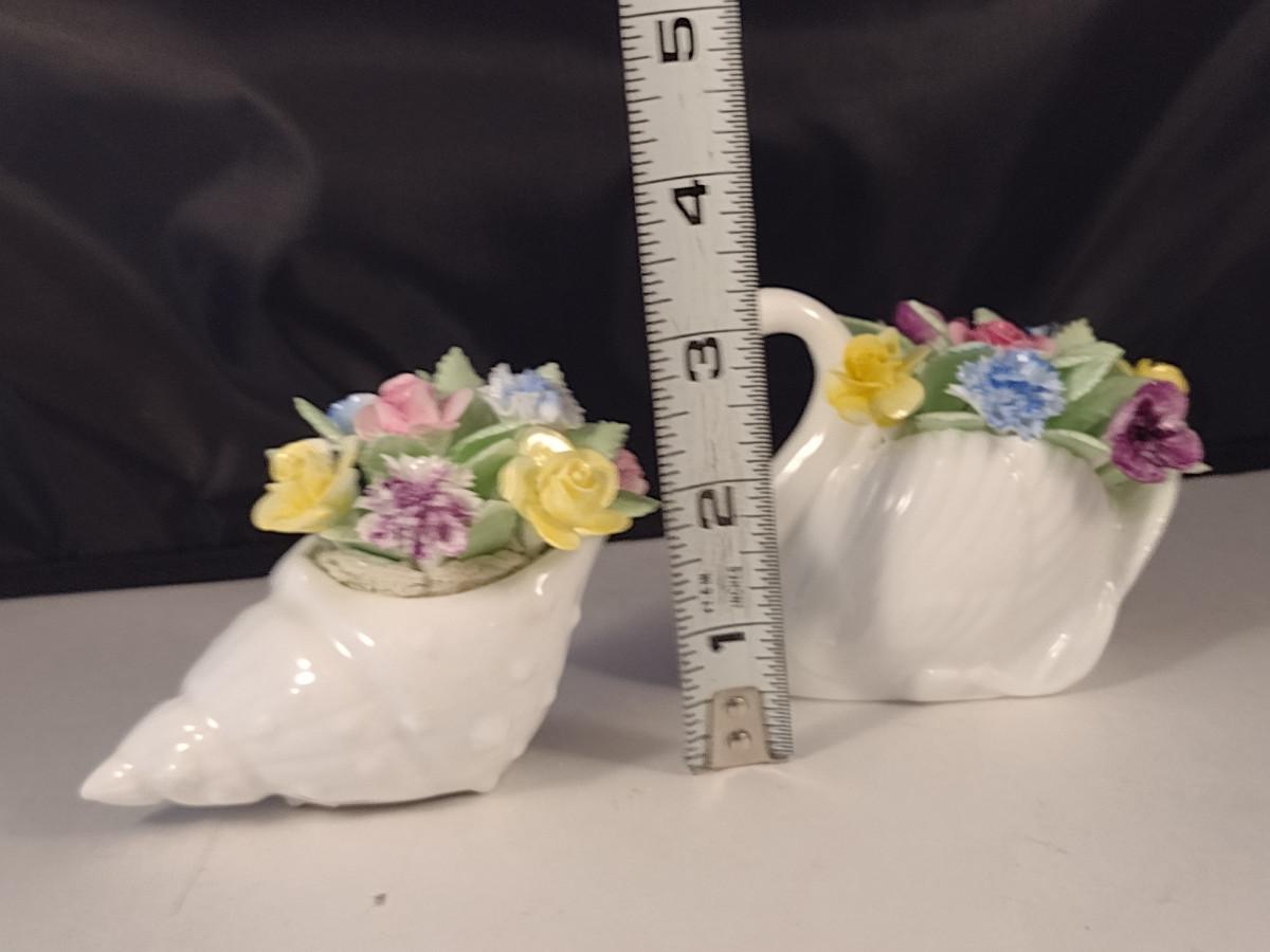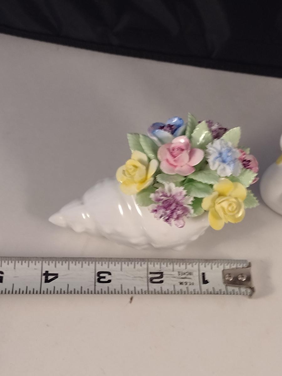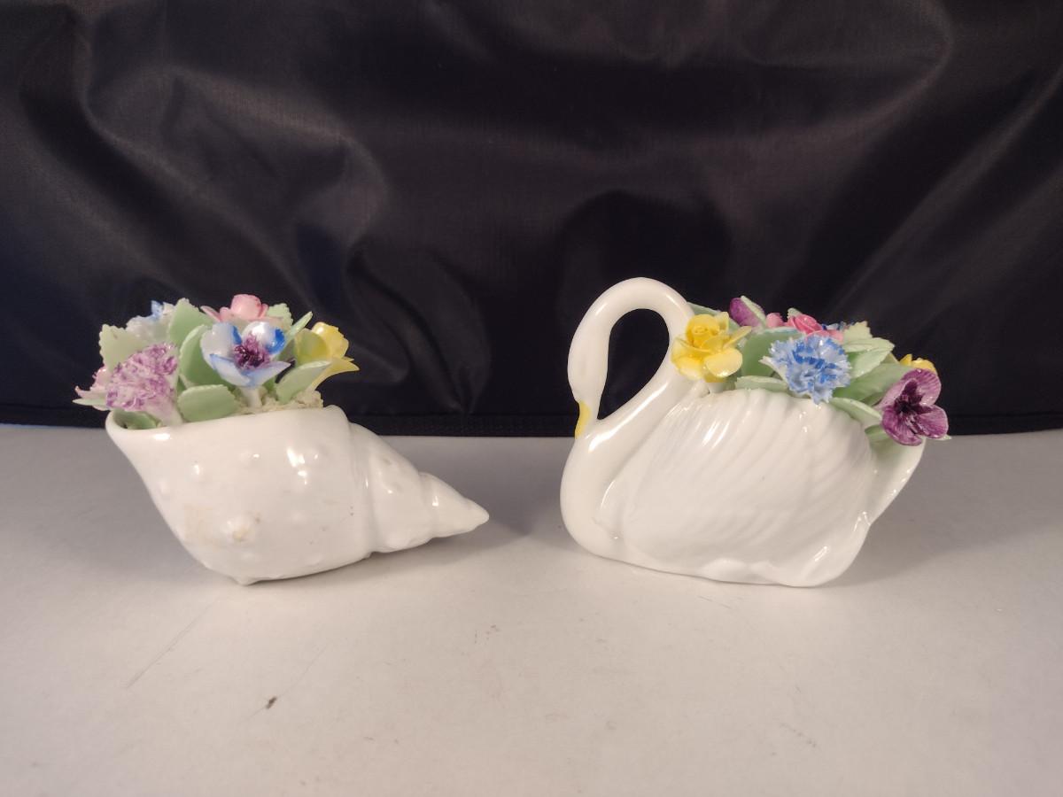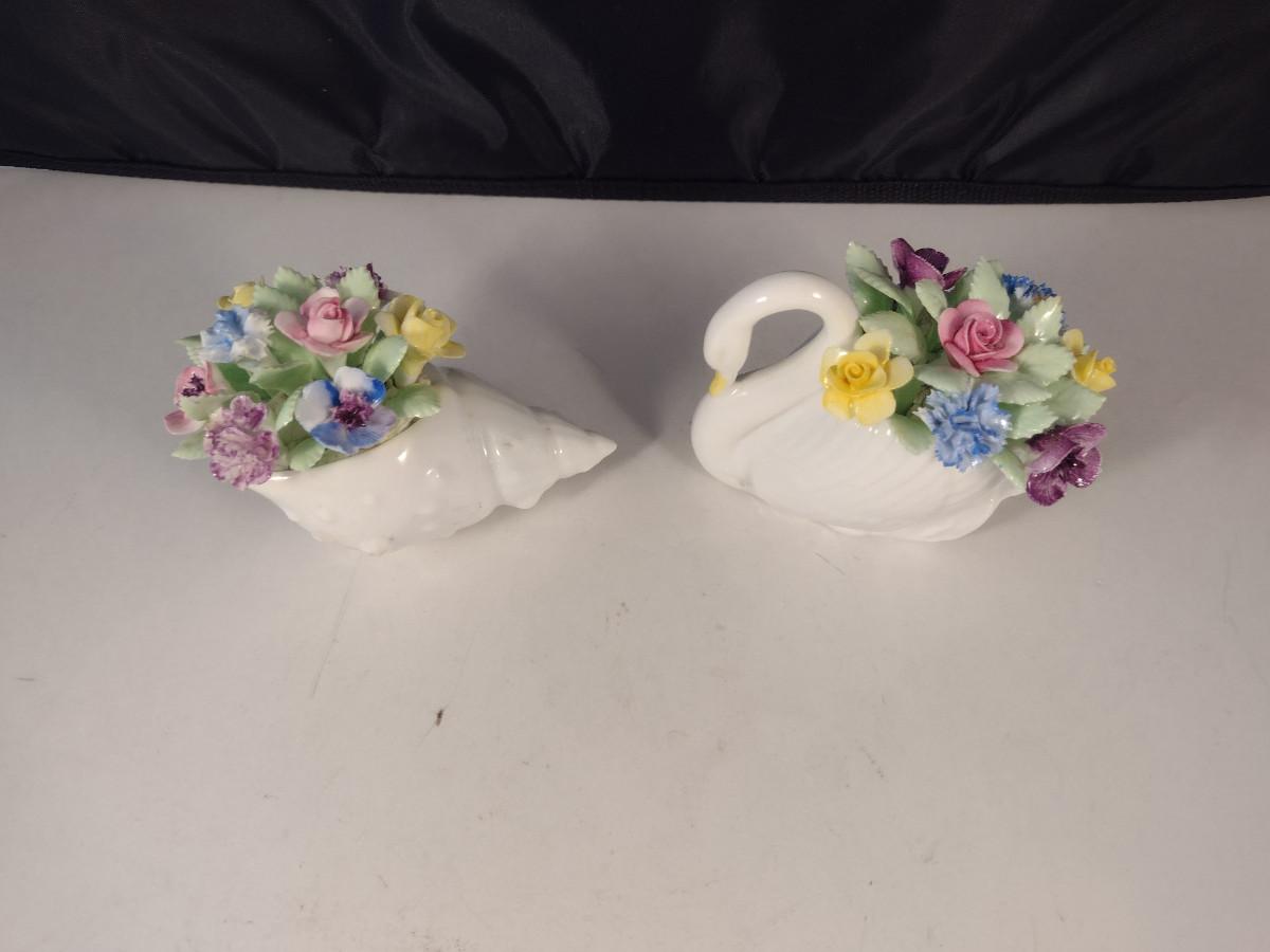 Pair of Porcelain Miniature Posy Figurines- Swan and Seashell
