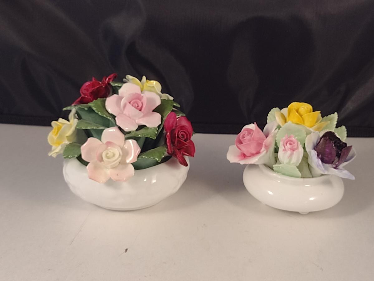 Pair of Porcelain Miniature Posy Arrangements- Aynsley and Golden Crown