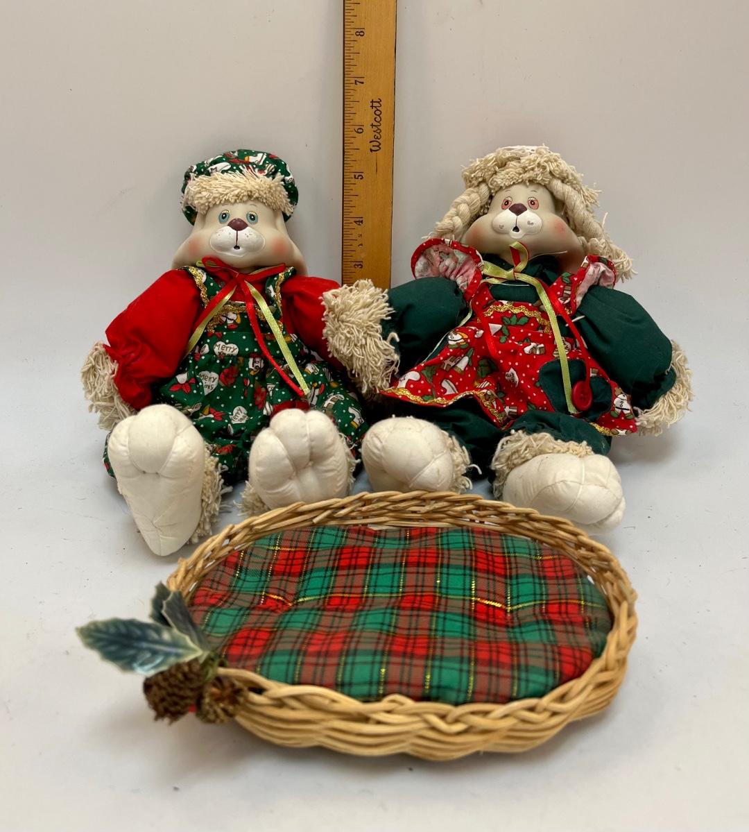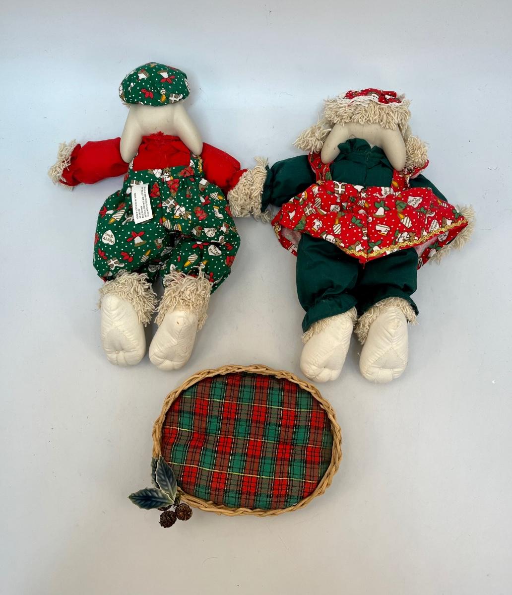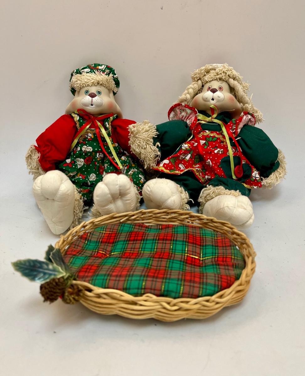 Pair of Porcelain Rabbits in Matching Christmas Outfits and Basket