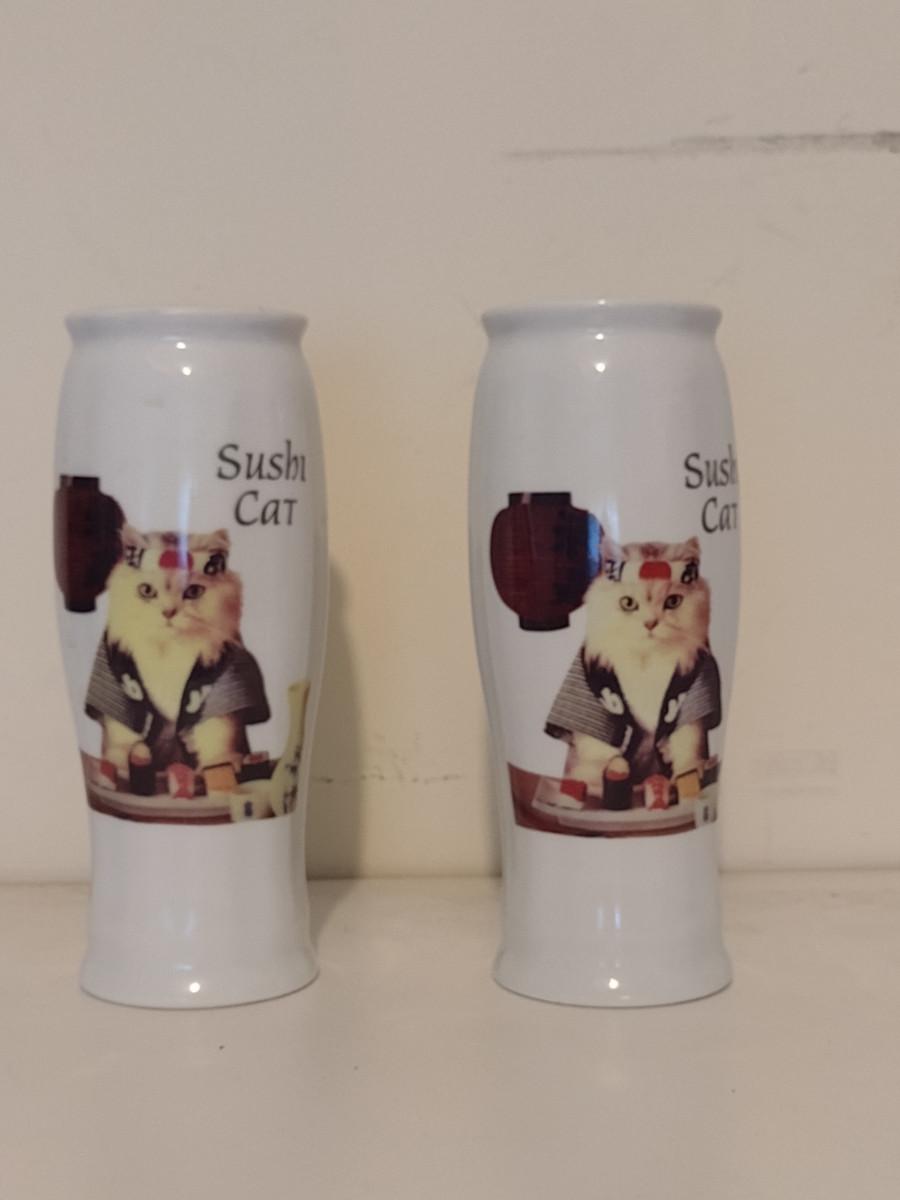 Pair of Porcelain Sushi Cat Vases- Approx 7 3/4" Tall