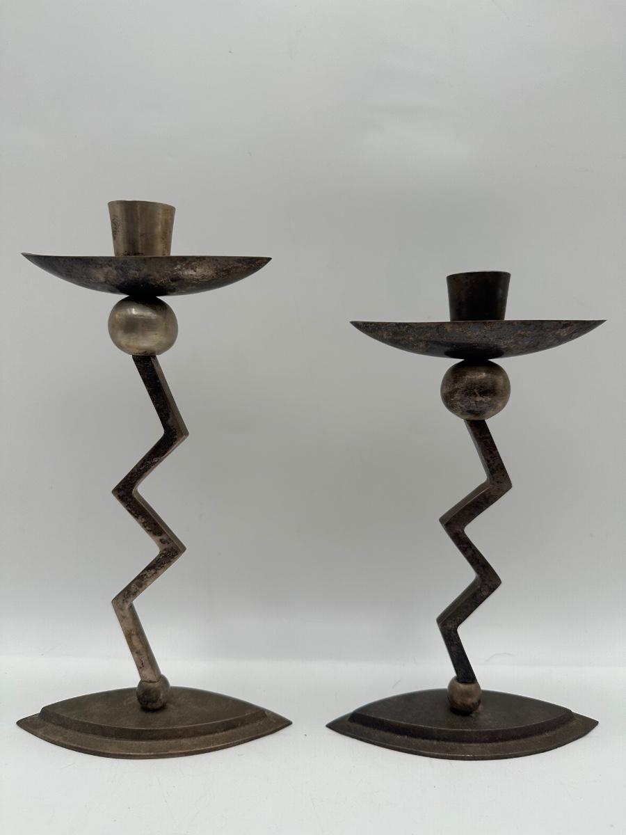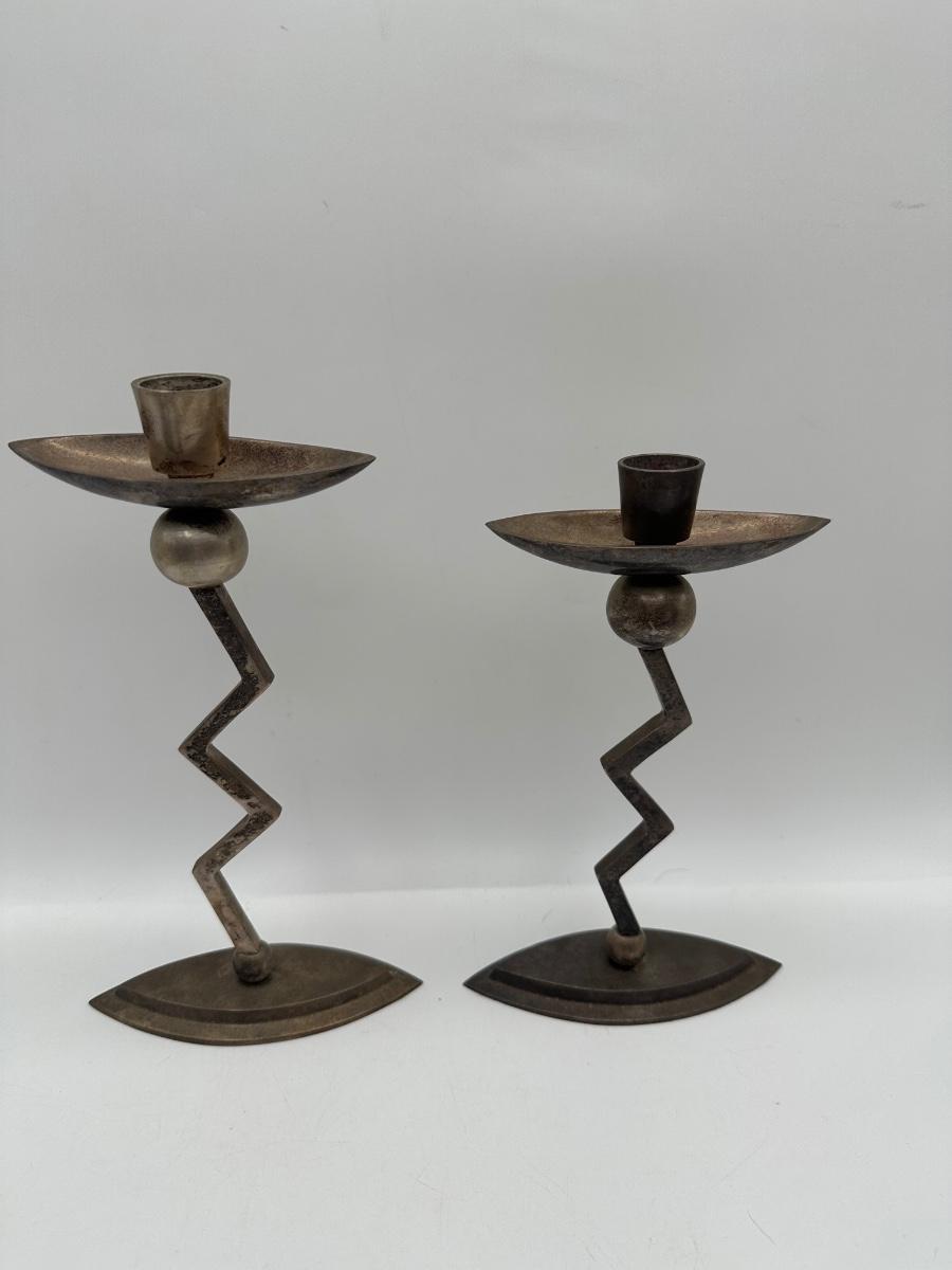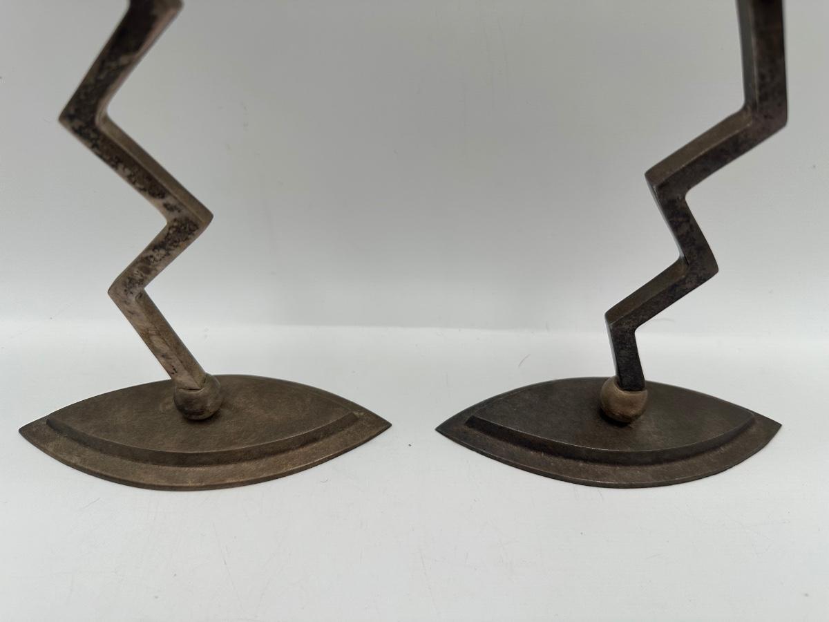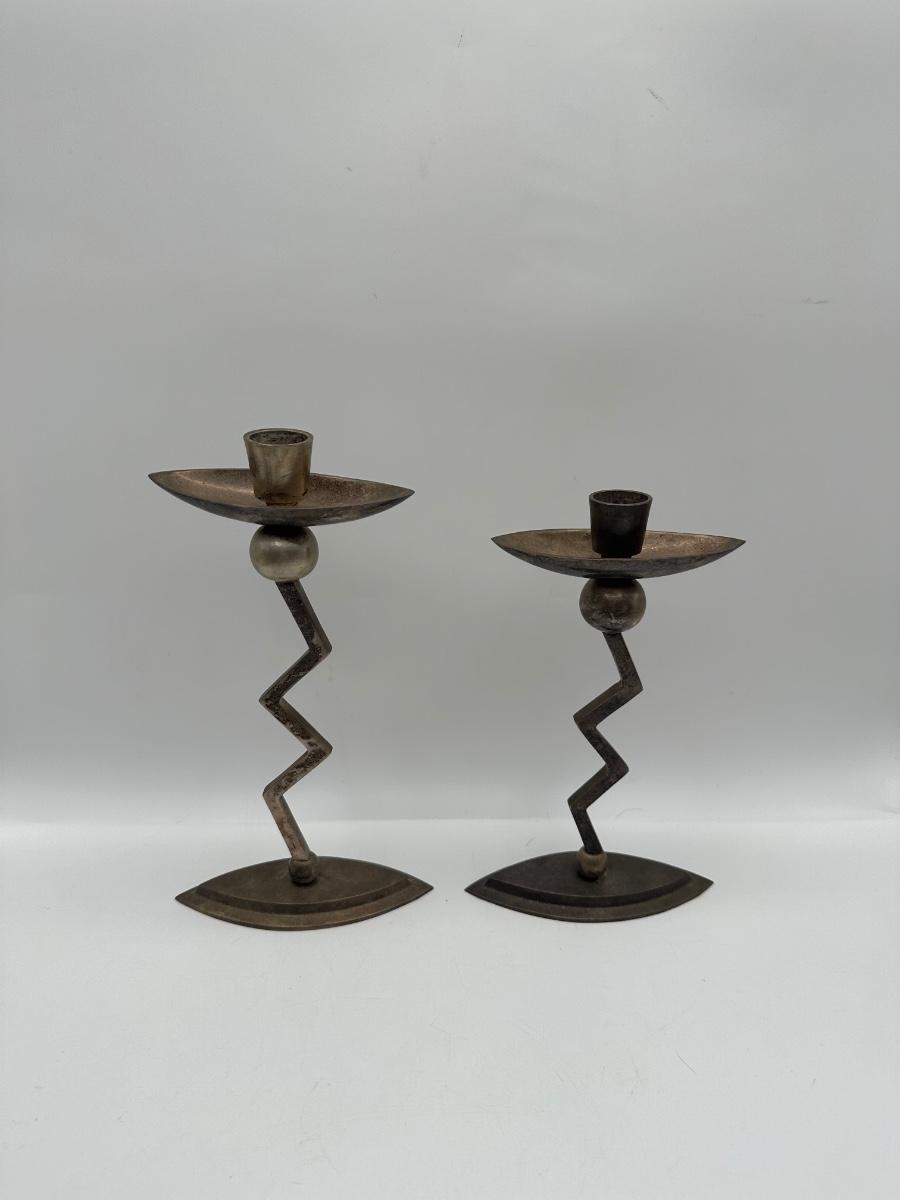 Pair of Postmodern Memphis Style Zigzag Vintage Candlestick Holders
