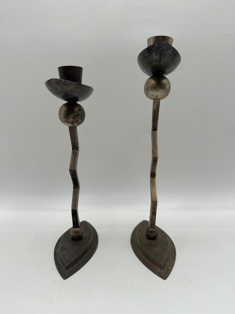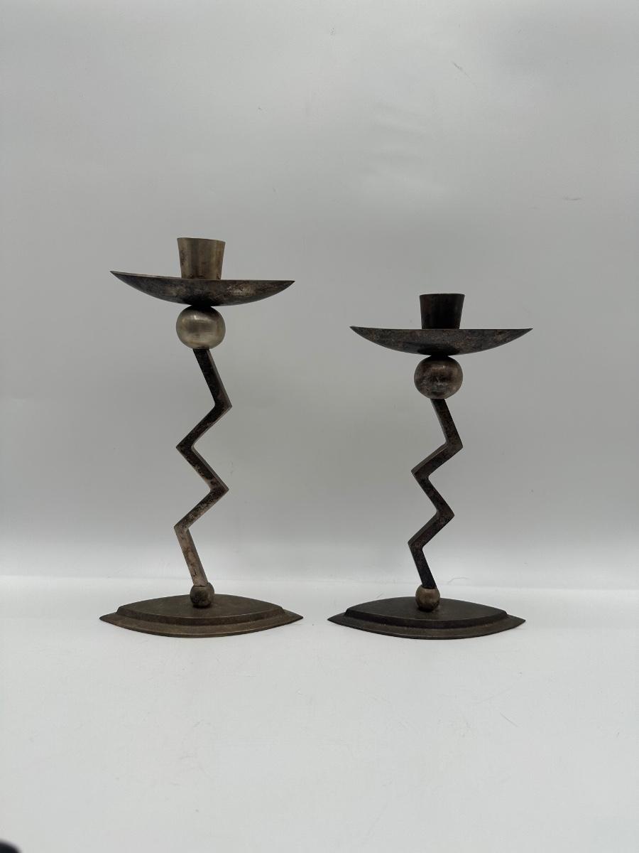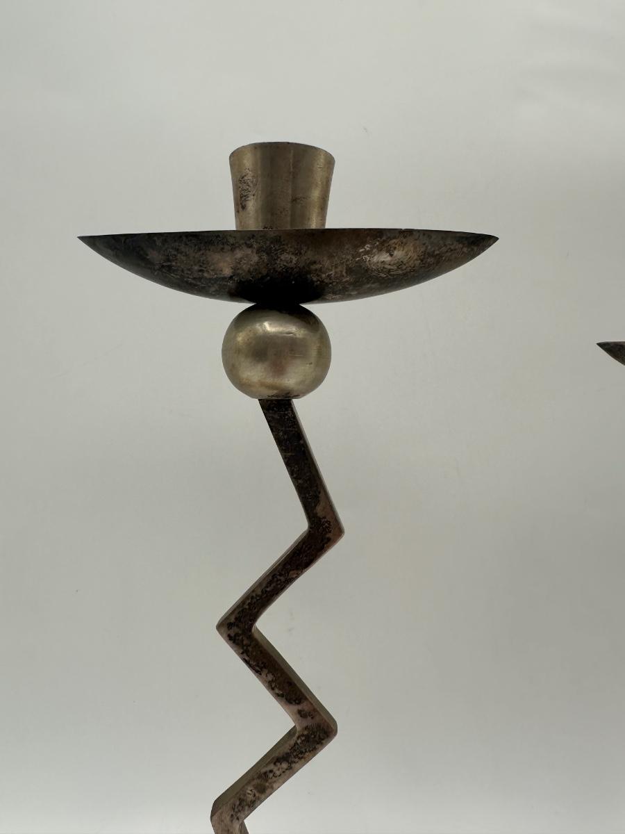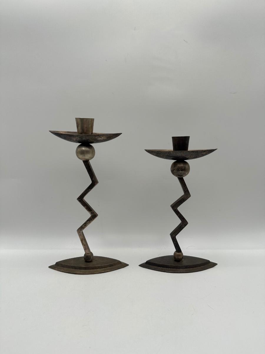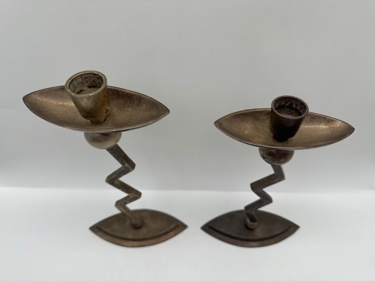Pair of Postmodern Memphis Style Zigzag Vintage Candlestick Holders