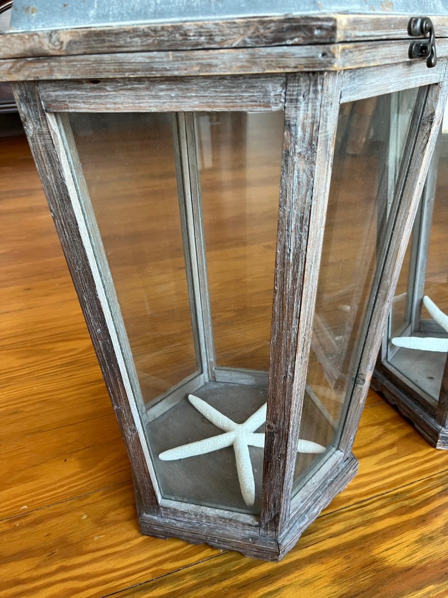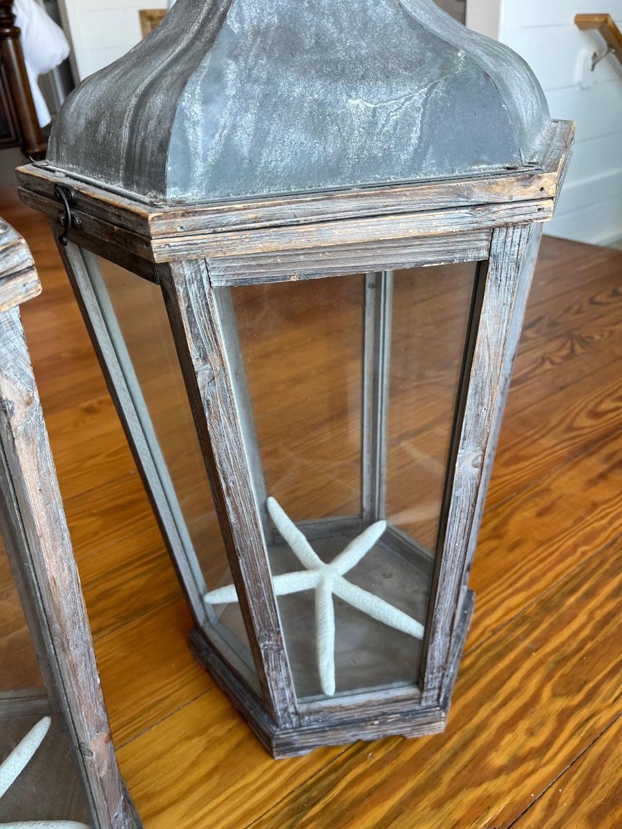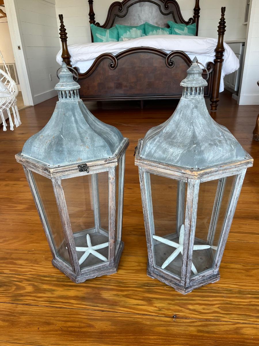 Pair of Pottery Barn "Park Hill" lanterns; approx. 31" x 14" x 15" each