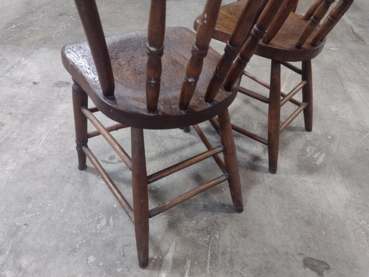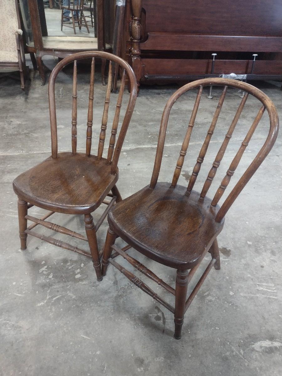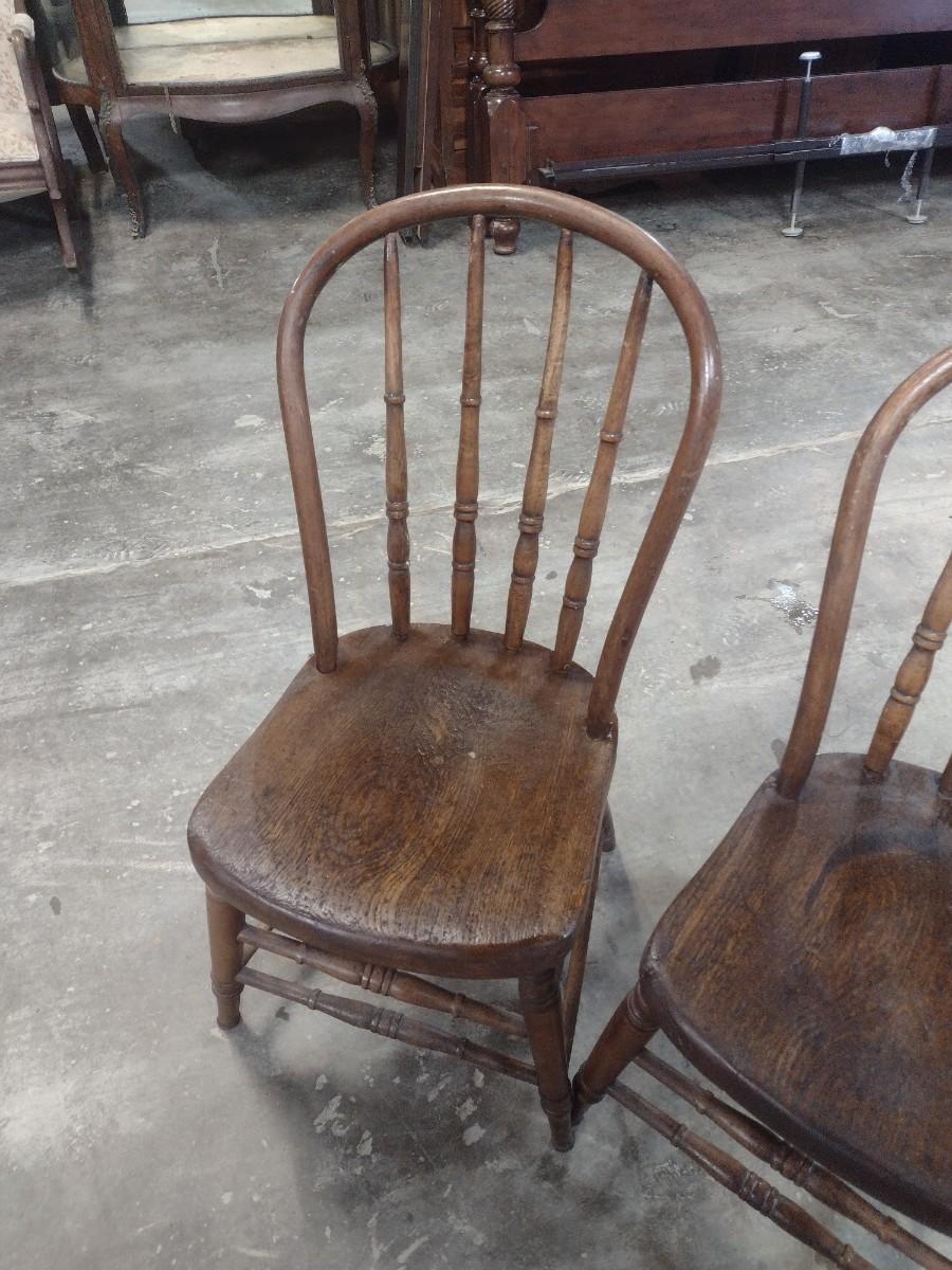 Pair of Primitive Bent Back Solid Wood Chairs (see pictures for any damage or cosmetic issues).
