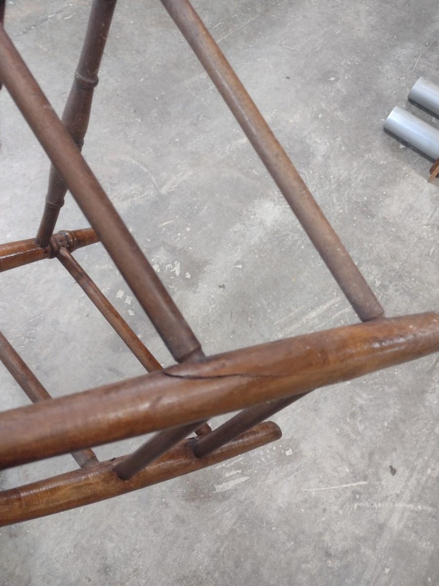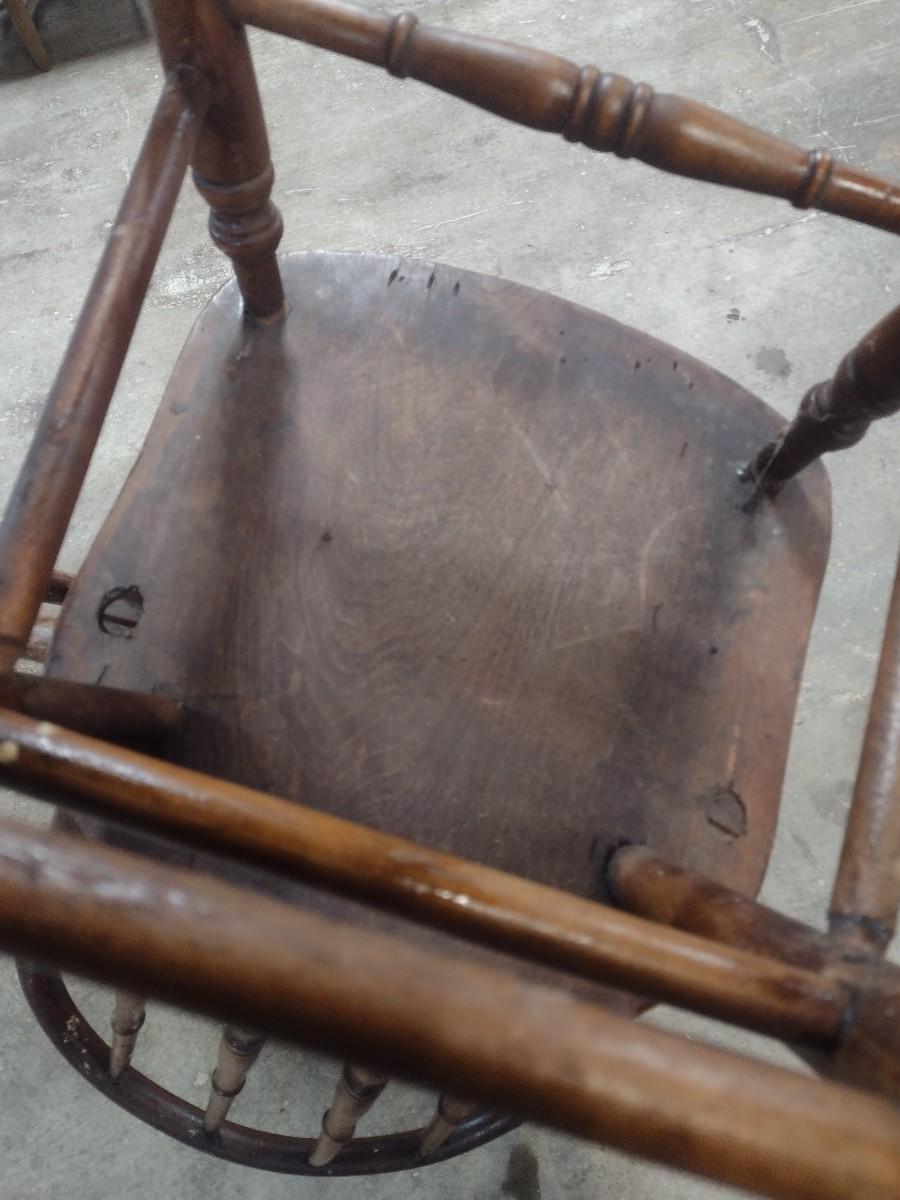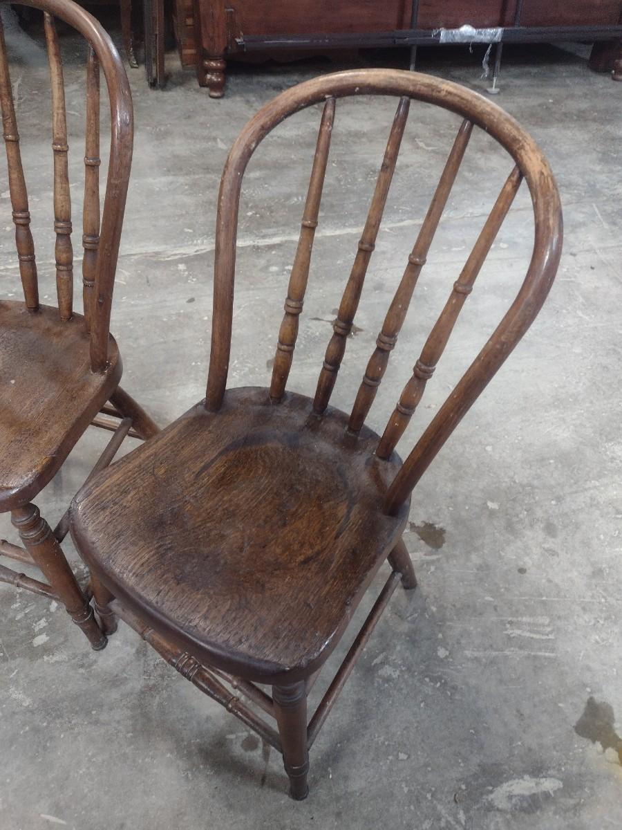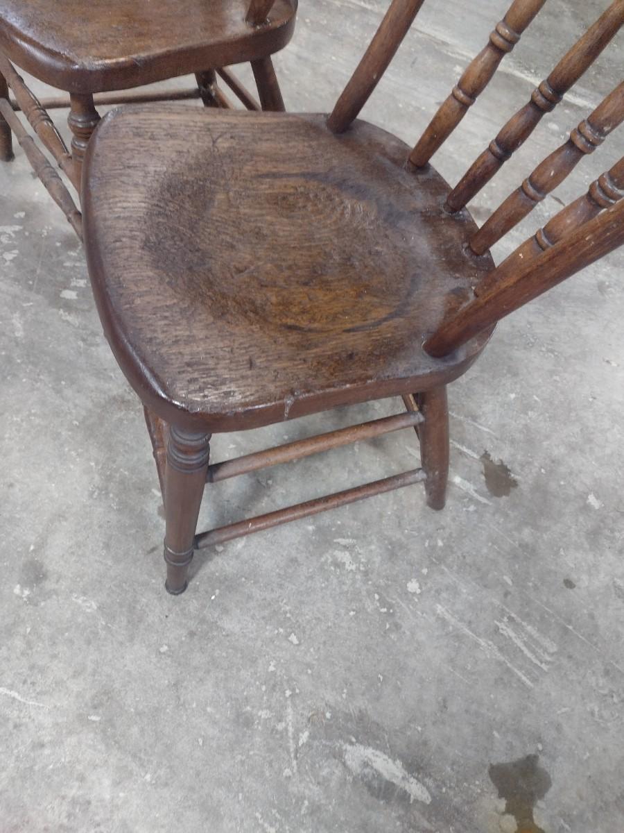 Pair of Primitive Bent Back Solid Wood Chairs (see pictures for any damage or cosmetic issues).