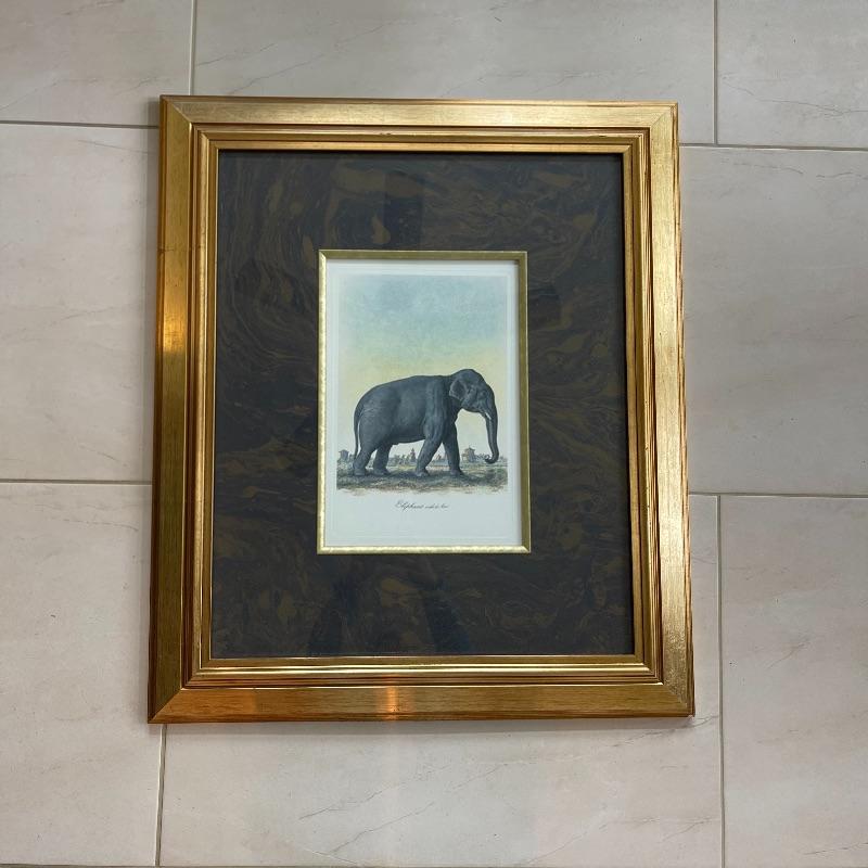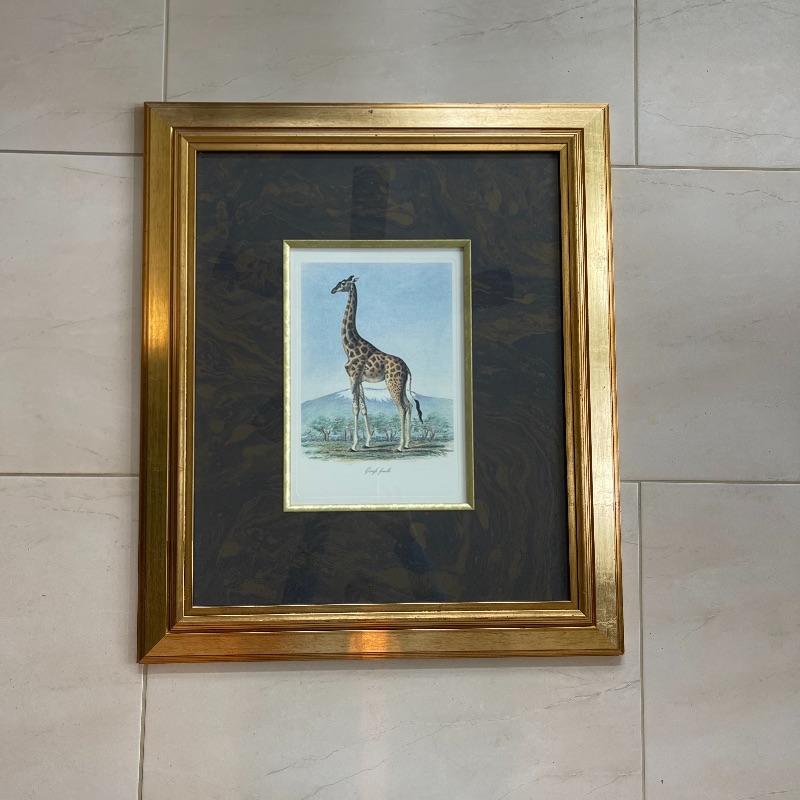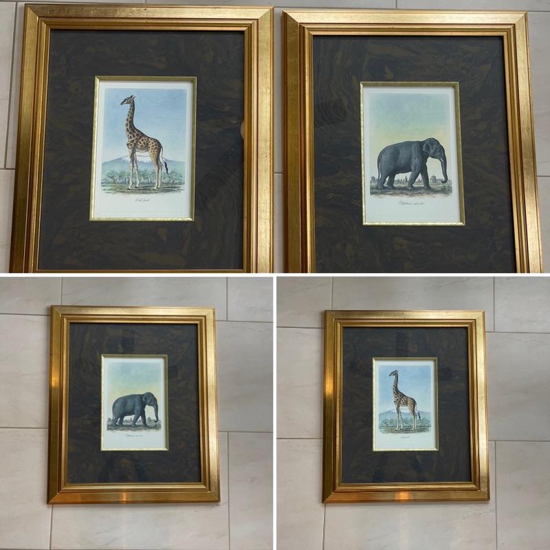 Elephant and Giraffe surrounded by a Beautiful Gold Frame
