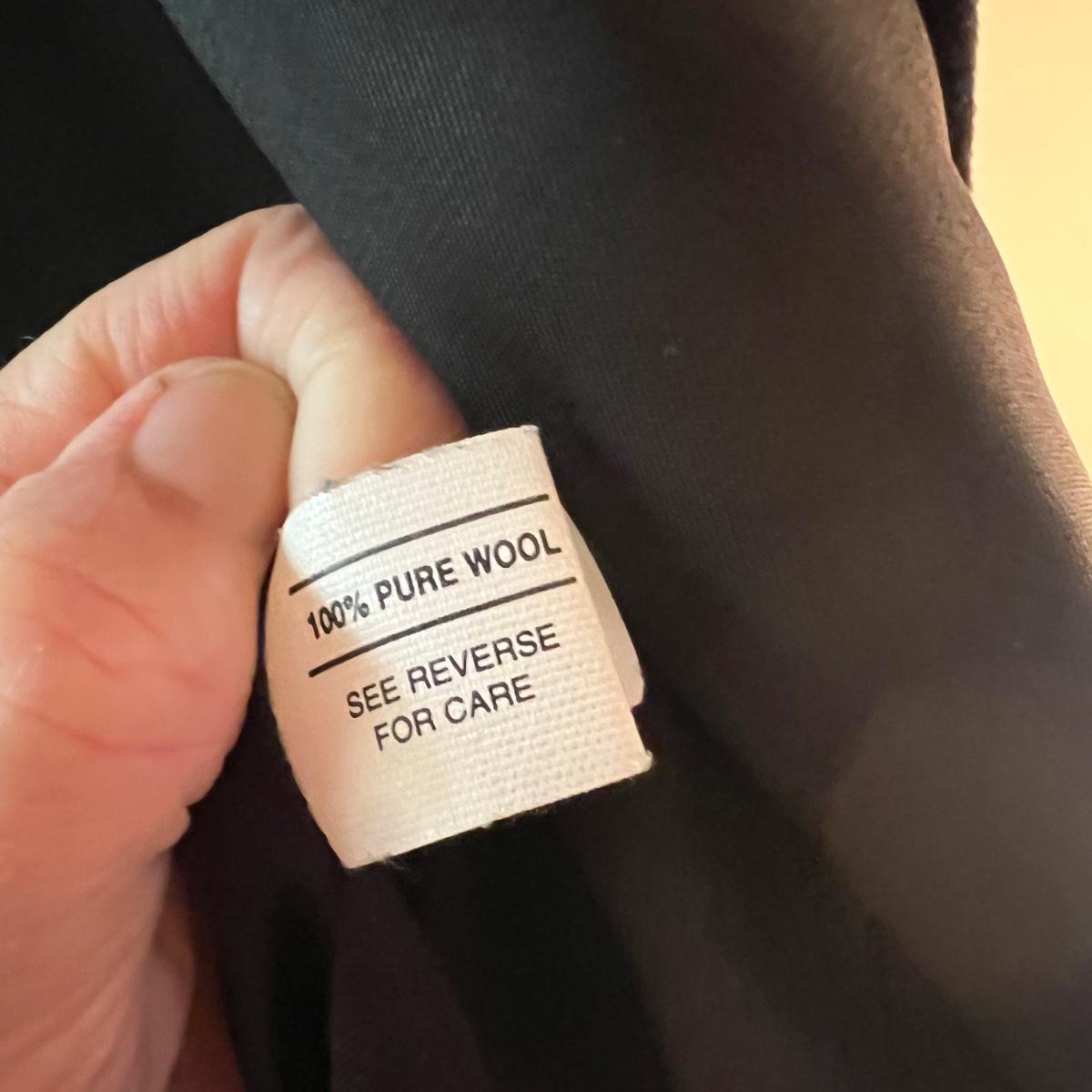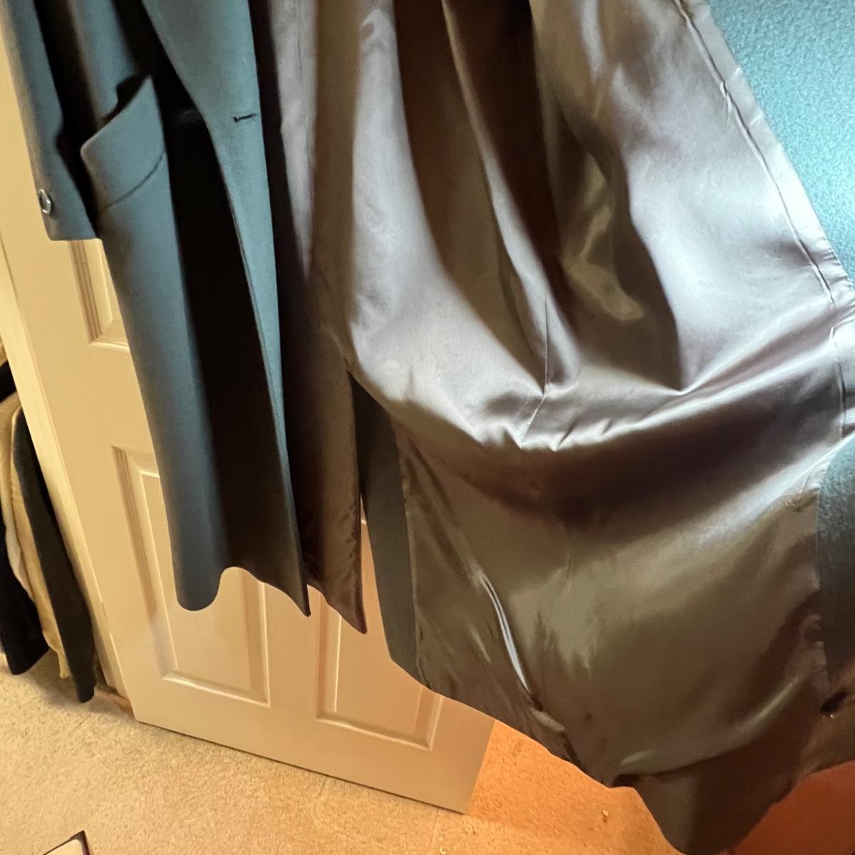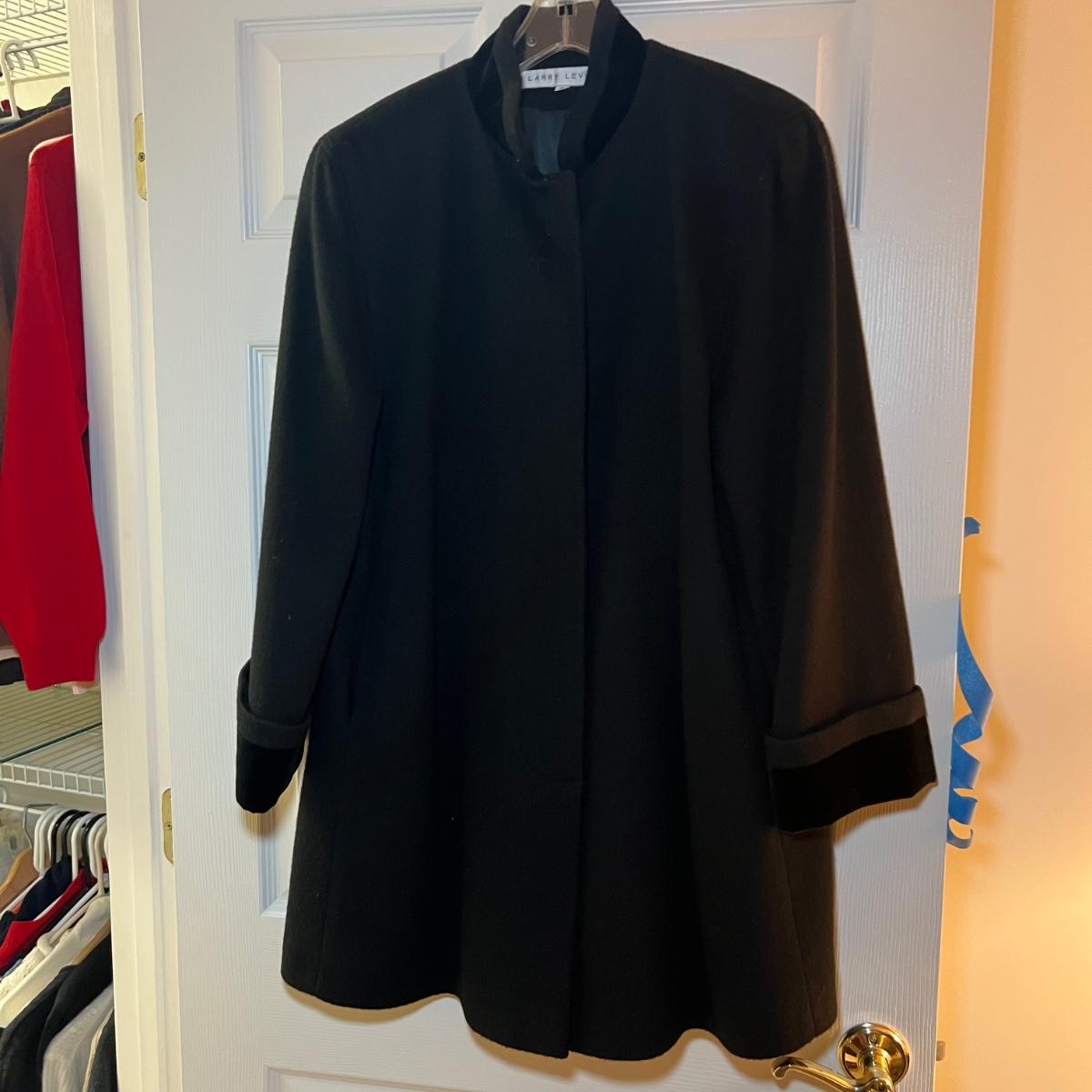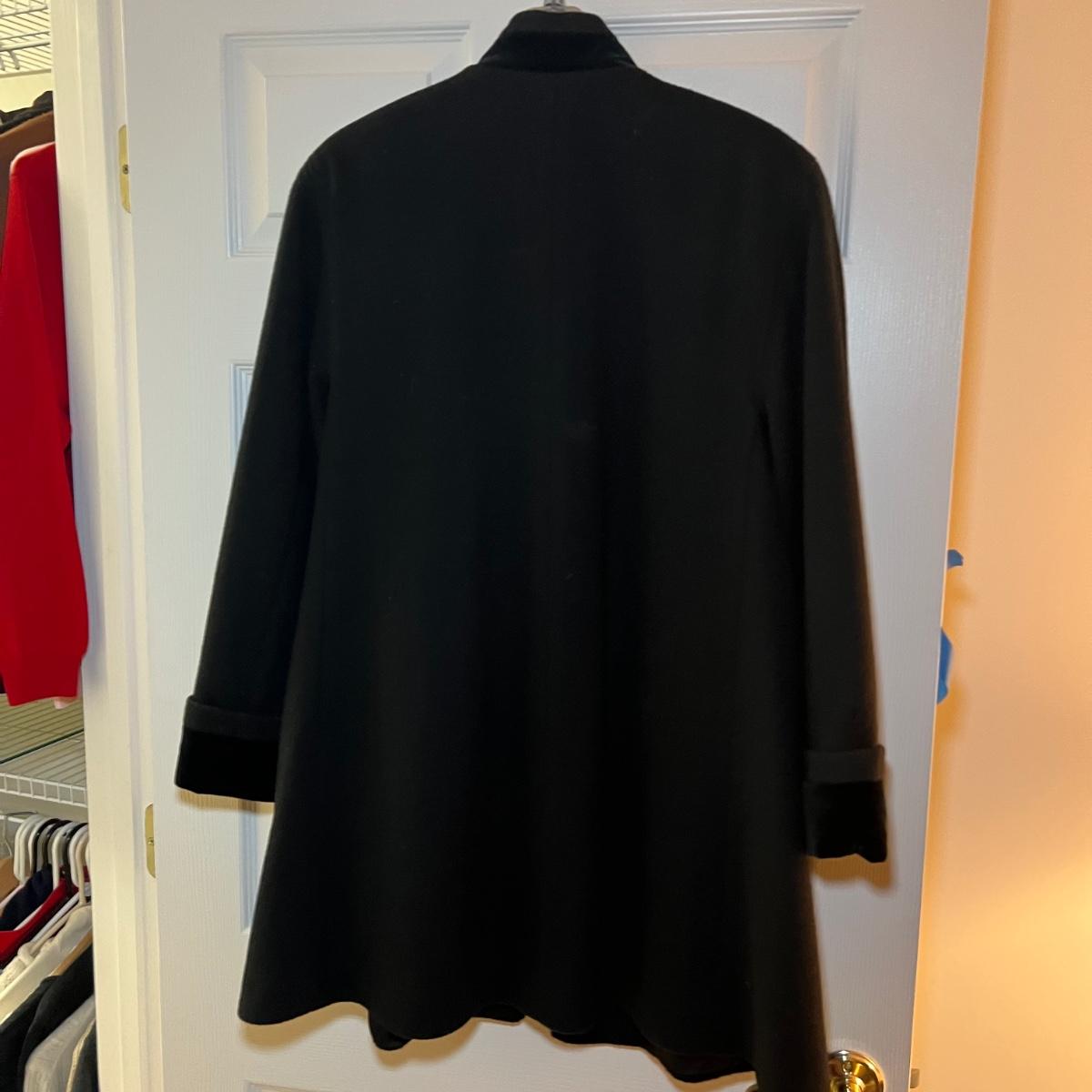 Two pure wool jackets here that includes a green Jones New York petite coat that measures 22” x 24” x 46”. The black coat is size 8 and both jackets are lined. Dust jacket cover is included.