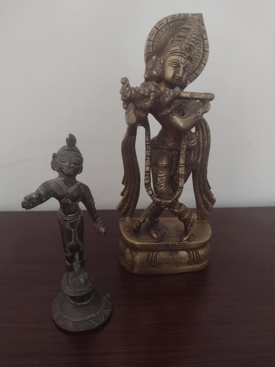 Pair of Quality Brass Statuettes includes Dancing Lord Krishna