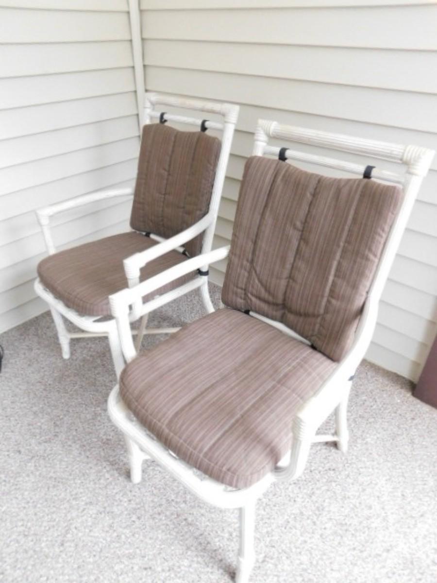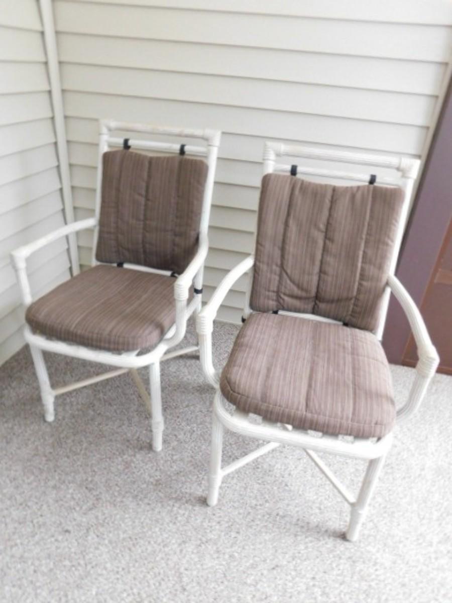 Pair of Quality Metal Frame Patio Chairs with Cushions Seat Frame is Welded Metal Slats