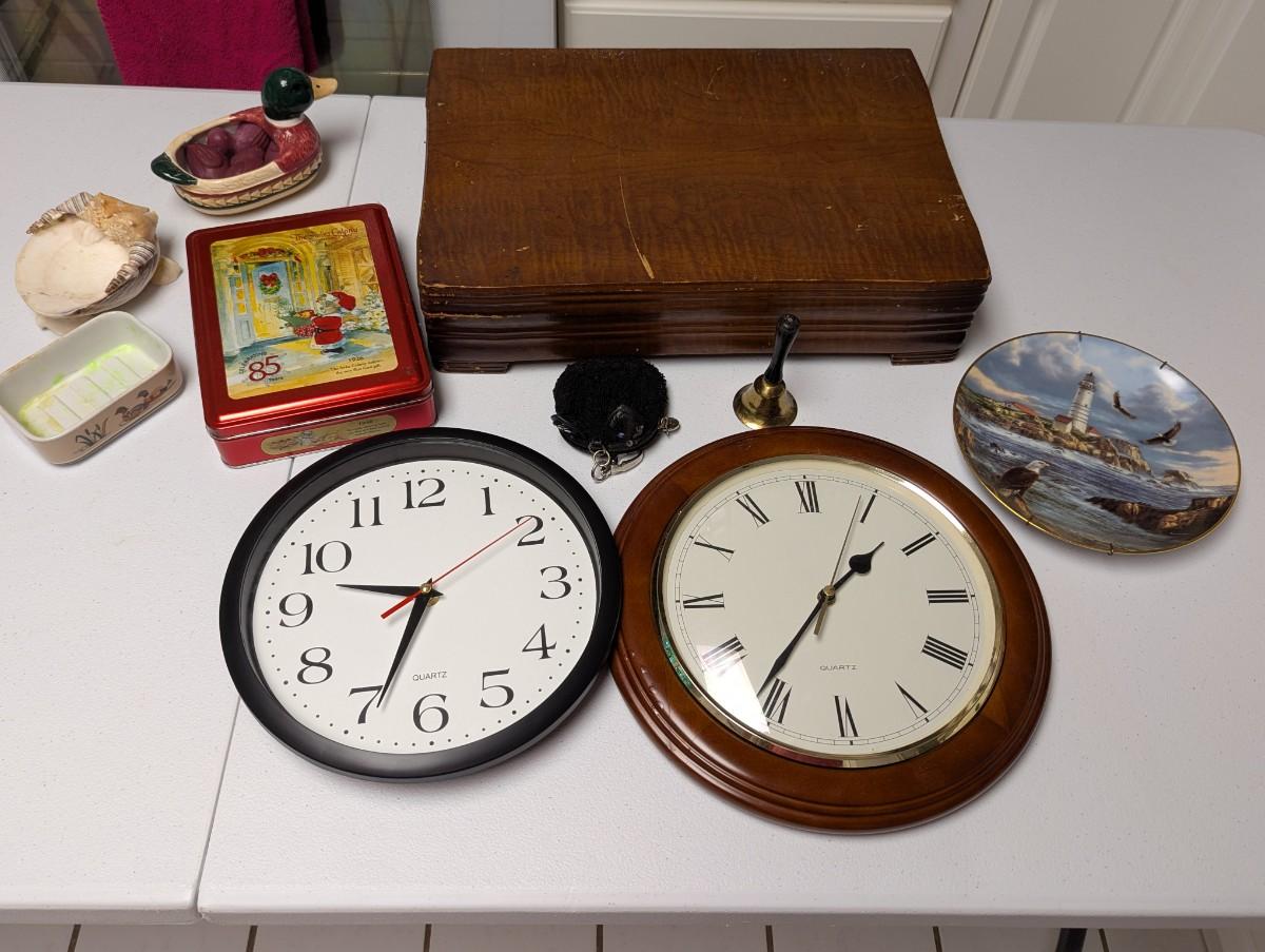 Pair Of Quartz Clocks Souvenir Plate Ceramic Duck Christmas Tin Box