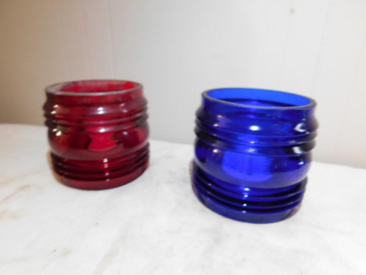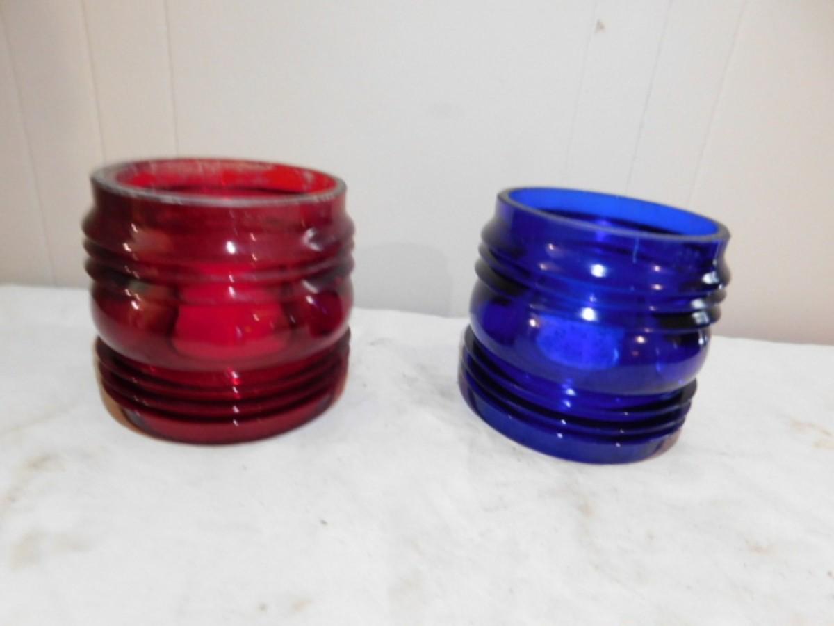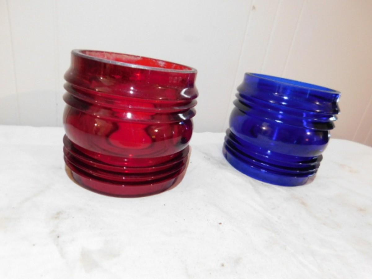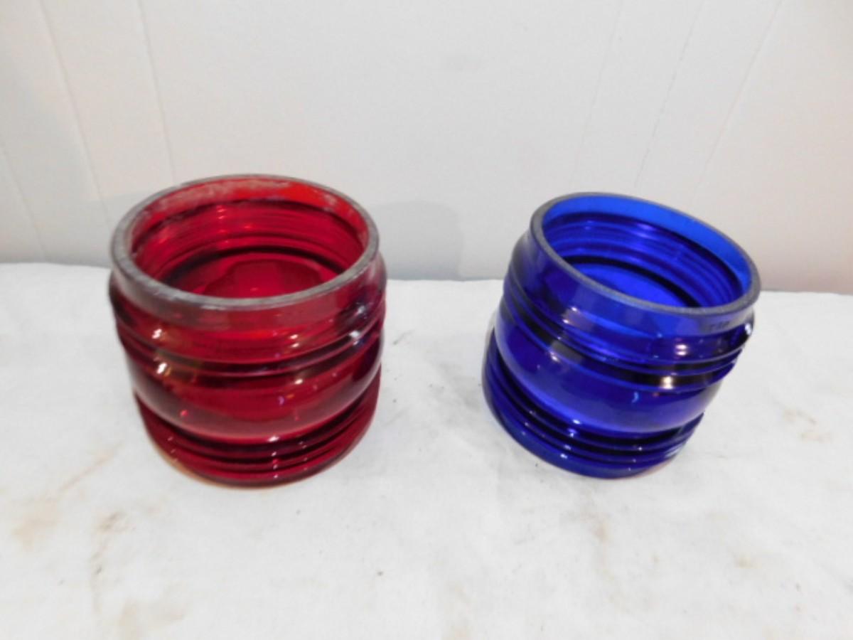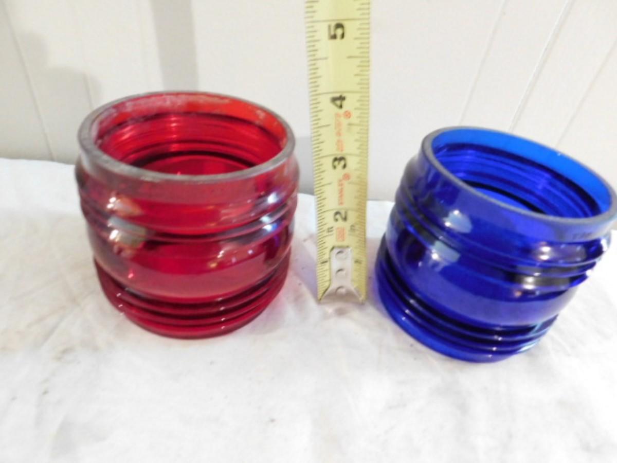 Pair of Railroad Signal Lantern Globes Red and Blue