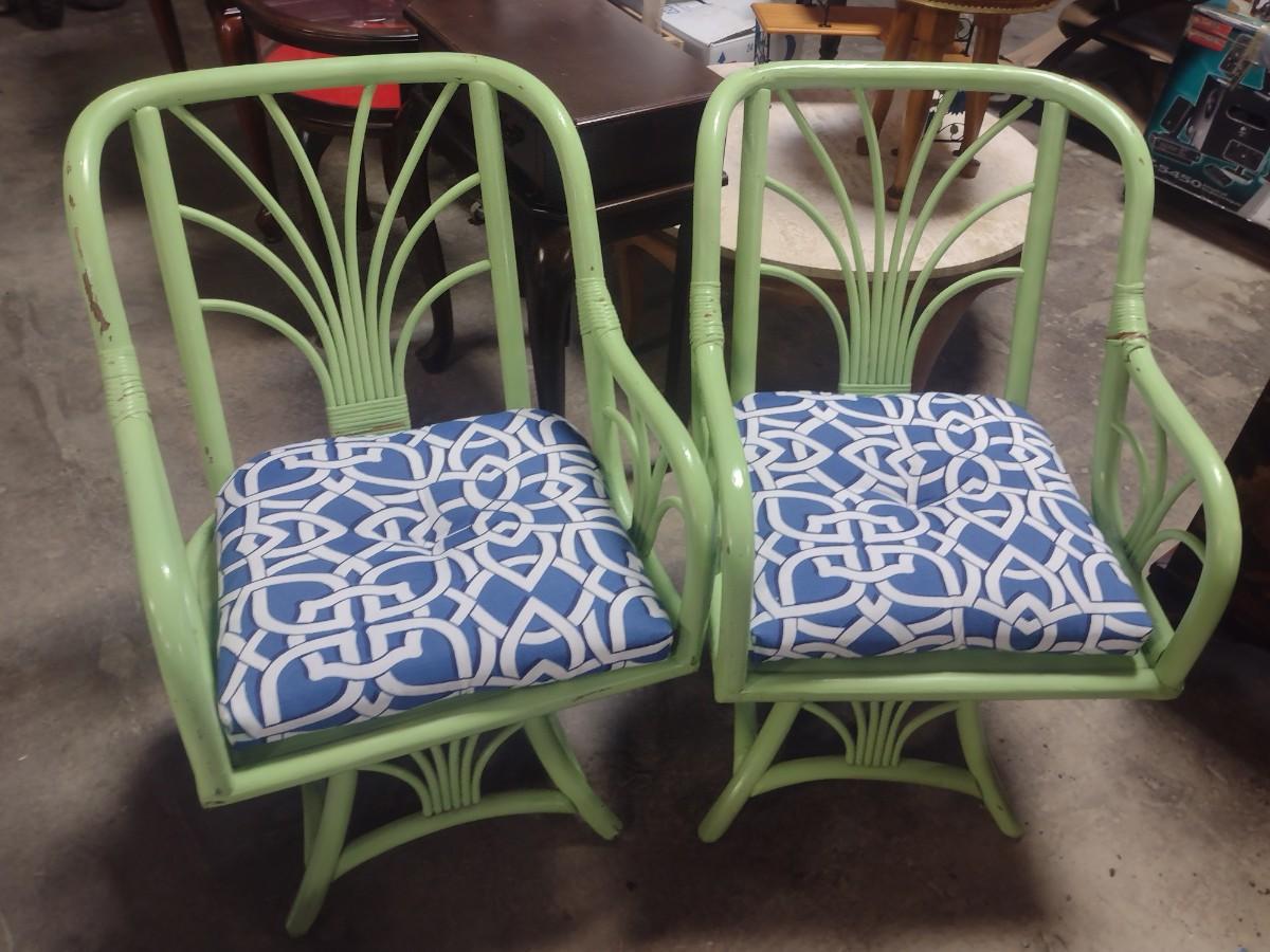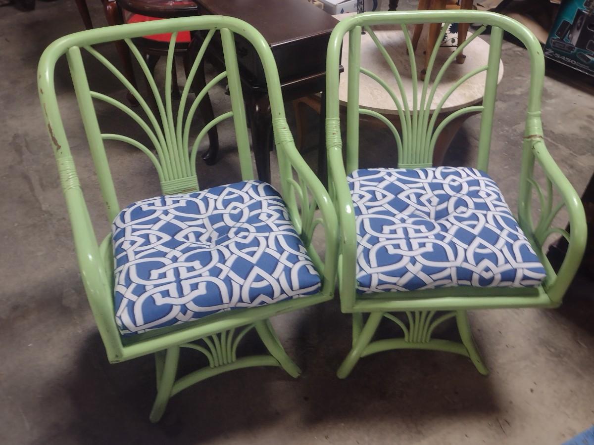 Pair of Rattan Patio Chairs with Seat Cushions
