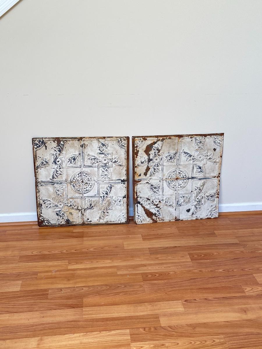 Pair of Reclaimed Metal Rustic Decorative Tin Panels