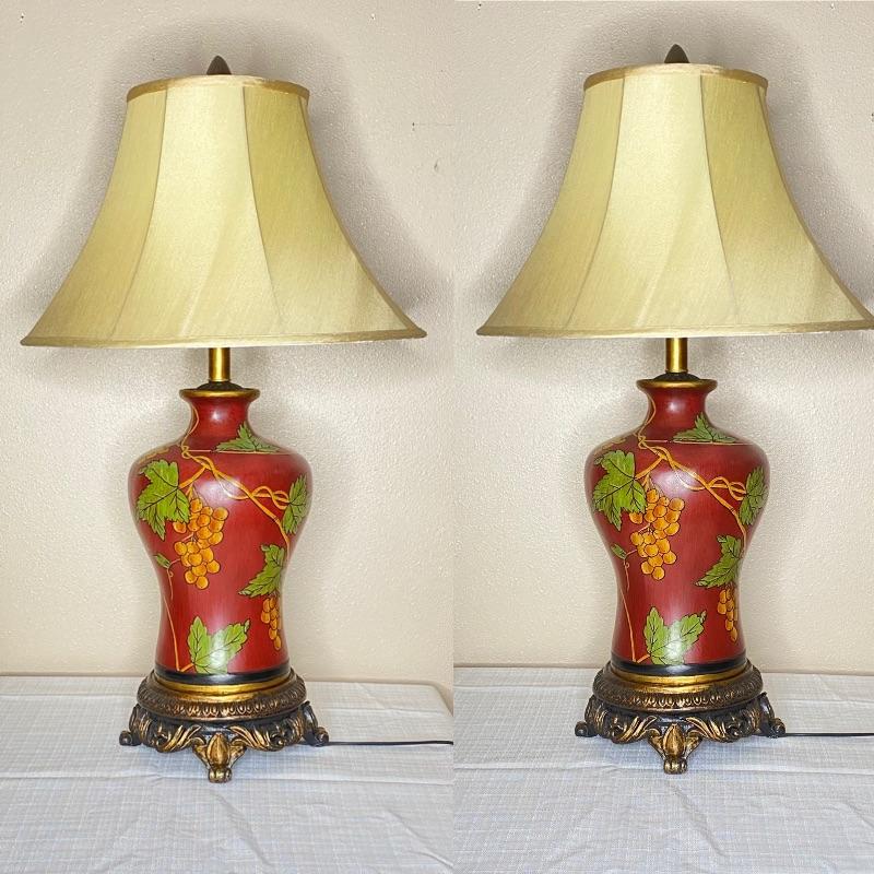 18” Round Cream Silky Shades / 32” H x 9” Round Lamp / Works