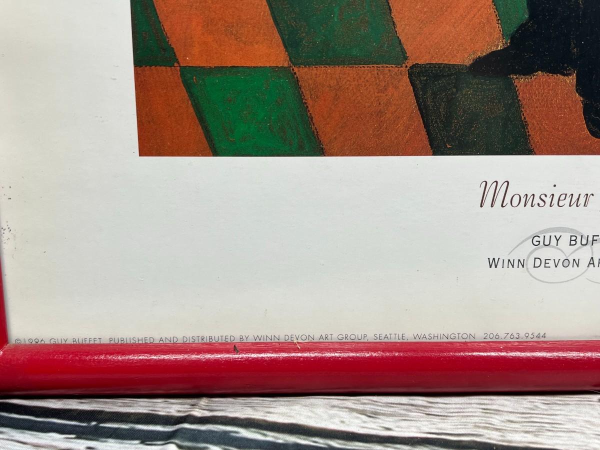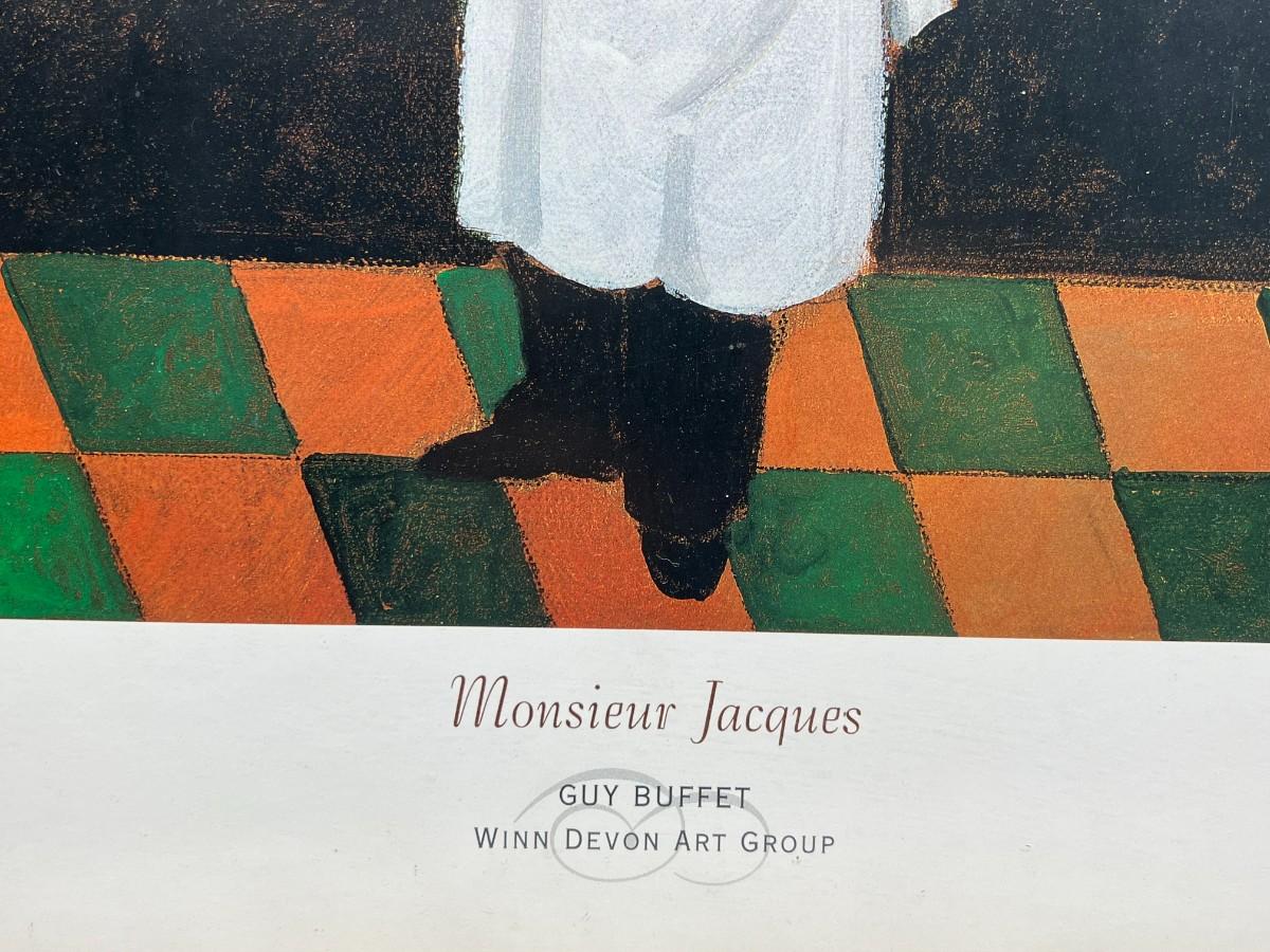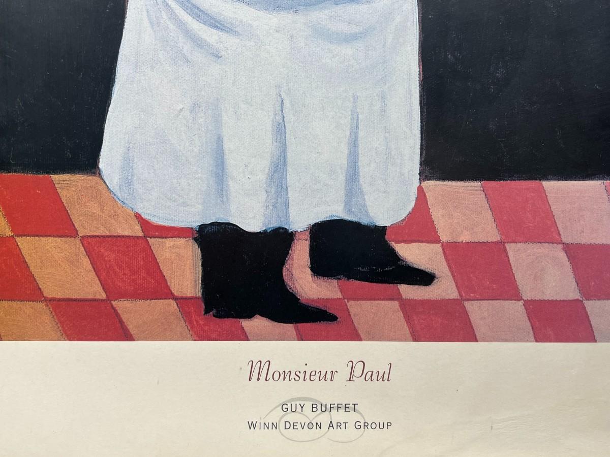 Pair of Framed Guy Buffet Winn Devin Art Group Chef with Chickens Poster Prints, there is no significant damage to the glass or the frame and is in good displayable condition. The frames are a little dirty and need to be cleaned, check pictures for more details and for sizing.