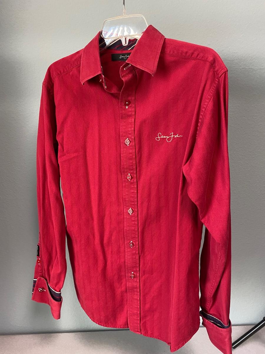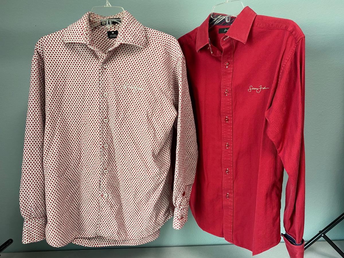 Pair of Red Sean John Long Sleeve Button Front Shirts Medium