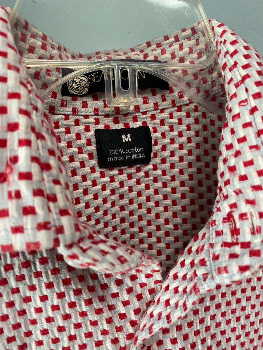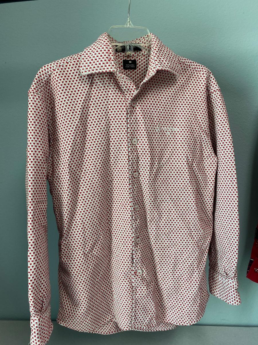 Pair of Red Sean John Long Sleeve Button Front Shirts, size Medium. Good condition.