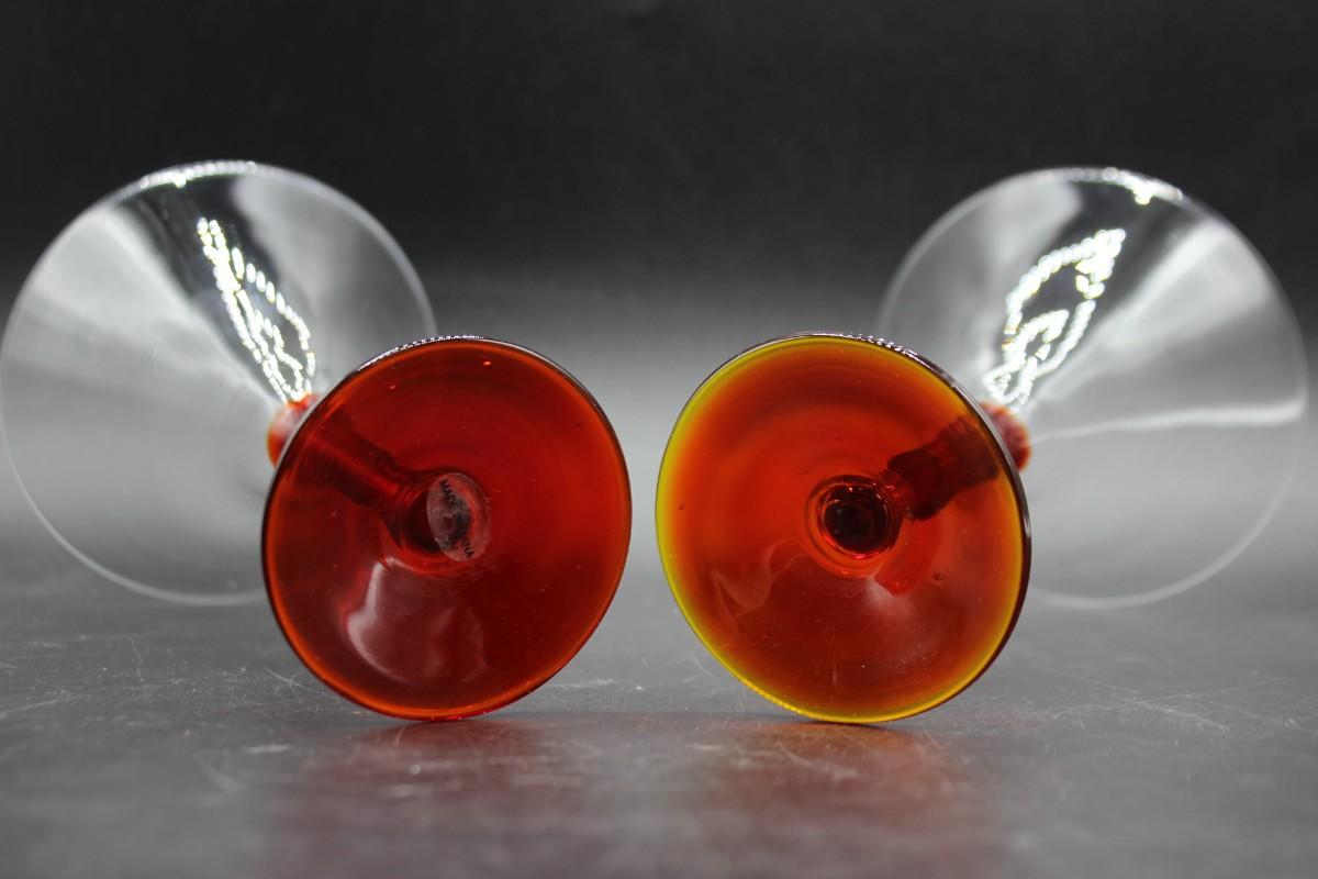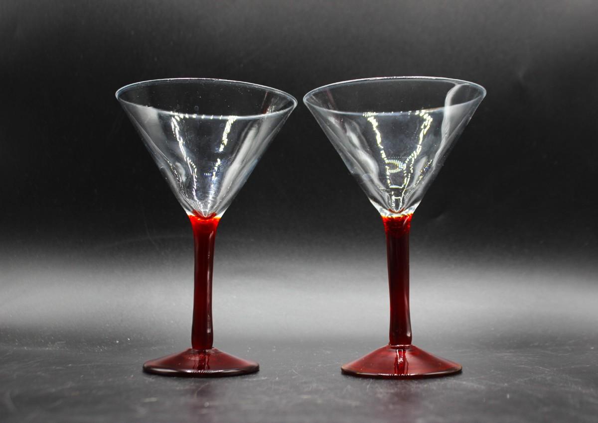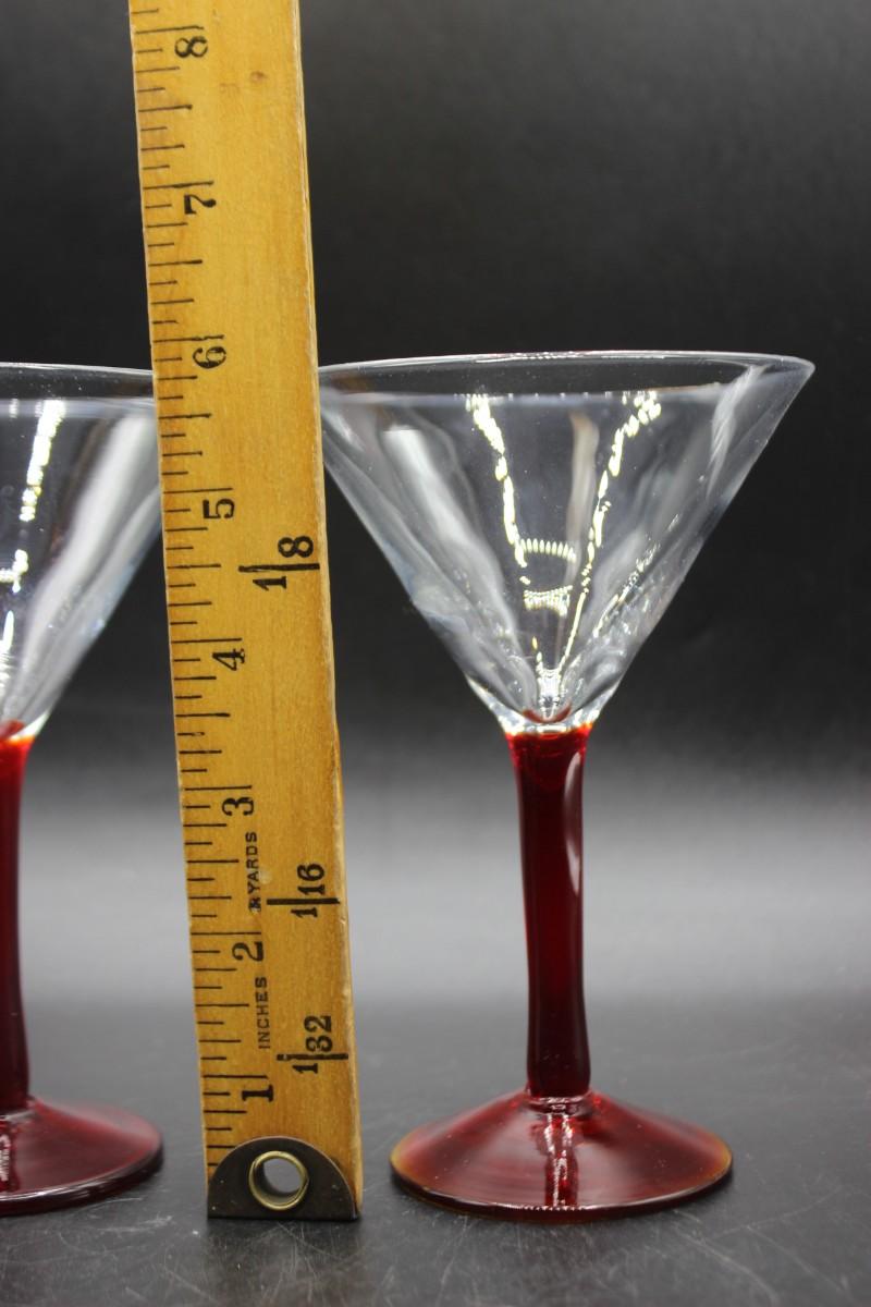 Pair of Red Stem Martini Glasses, there are no cracks or chips to either of the drinking glasses and is in good useable condition. Check pictures for more details and for sizing.