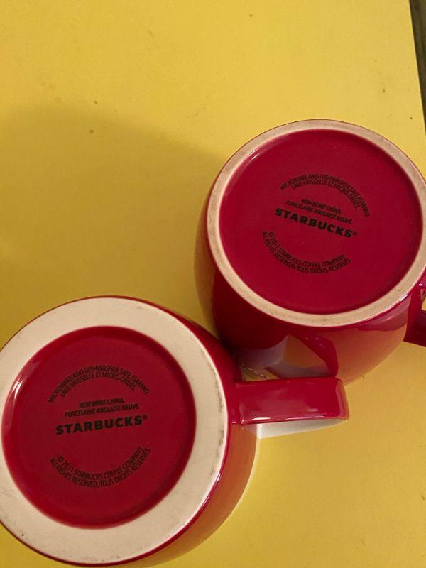 Pair of Red & White Starbucks Coffee Mugs Cups YD#019-0008