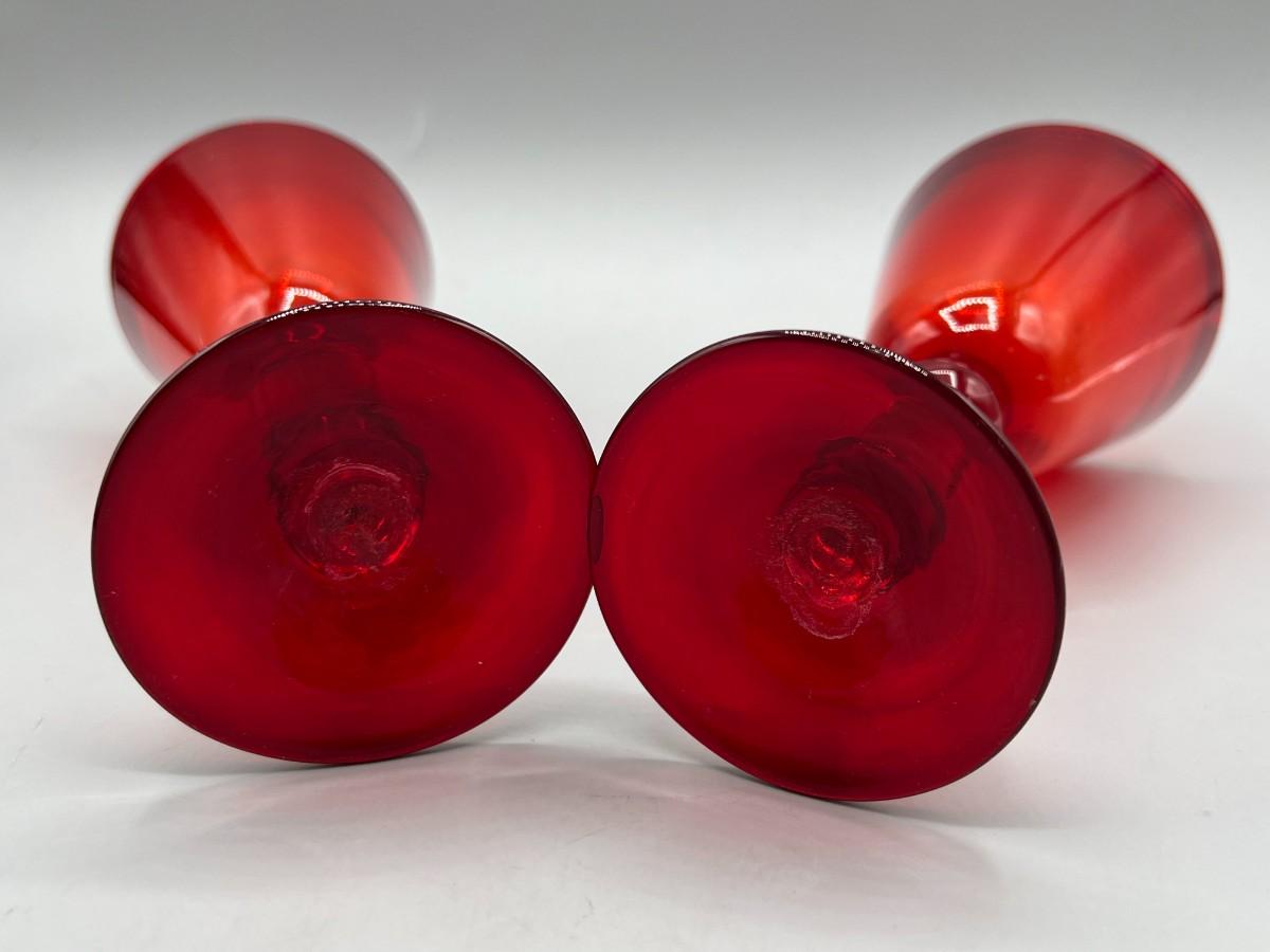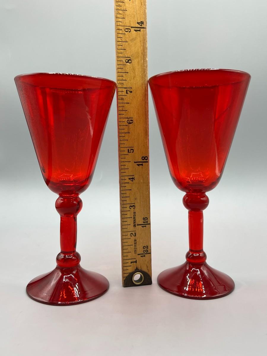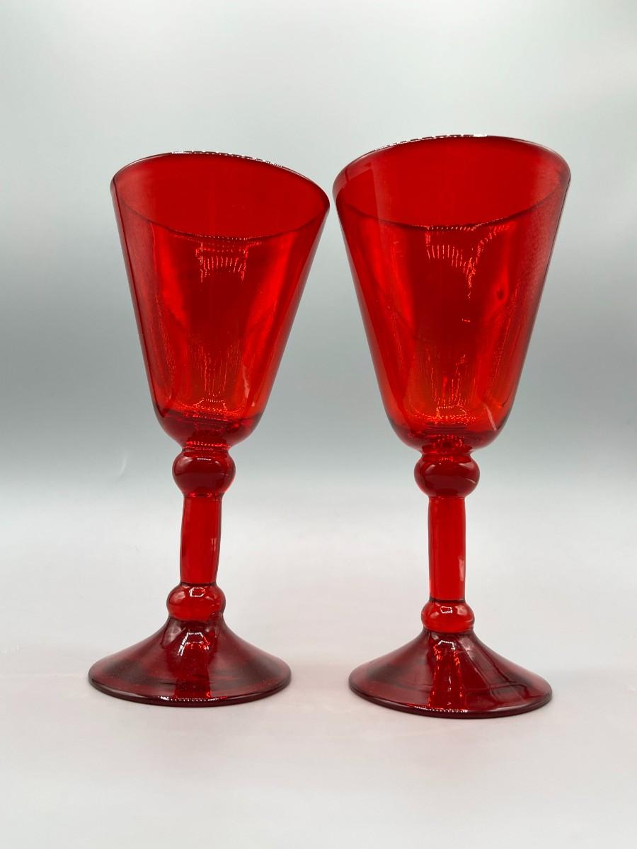 Pair of vibrant red wine goblet drink glasses. Good condition. About 7" size.